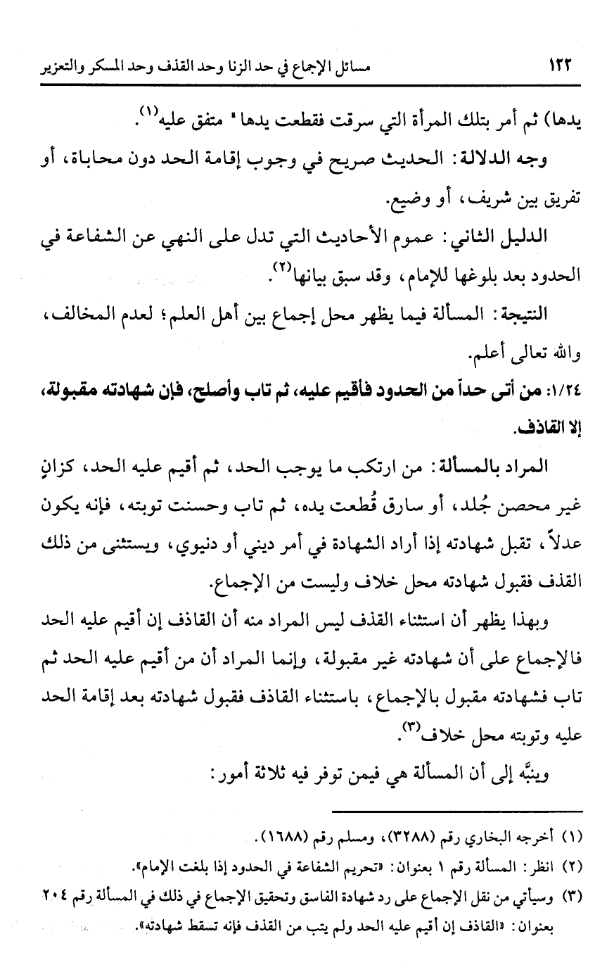 (¬2) انظر: المسألة رقم 1 بعنوان: "تحريم الشفاعة في الحدود إذا بلغت الإمام".