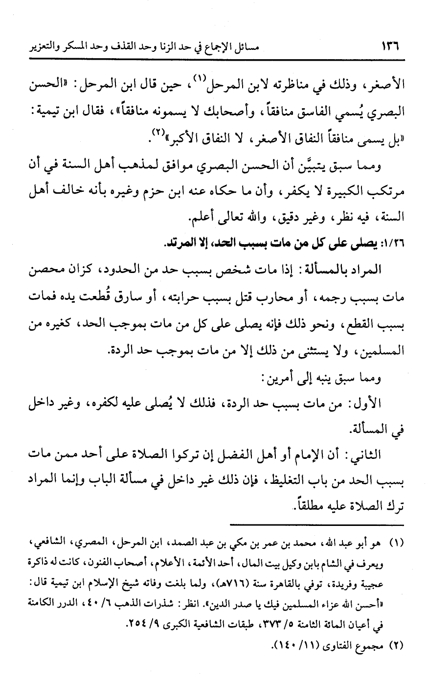 [26/ 1] يصلى على كل من مات بسبب الحد، إلا المرتد.