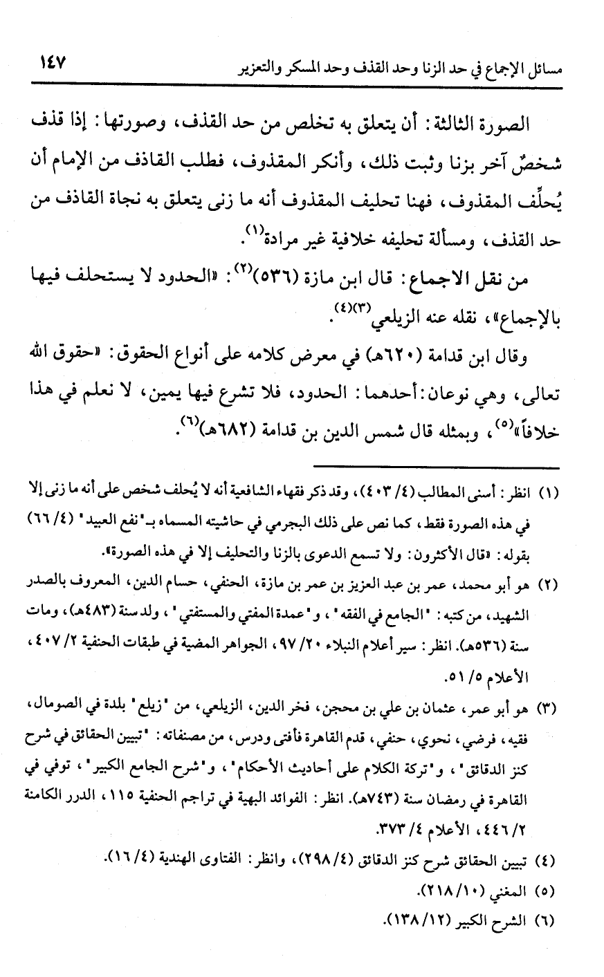 • من نقل الإجماع: قال ابن مازة (536) (¬2): "الحدود لا يستحلف فيها بالإجماع"، نقله عنه الزيلعي (¬3) (¬4).