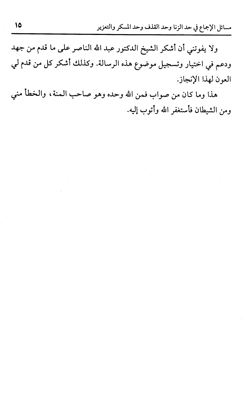 ولا يفوتني أن أشكر الشيخ الدكتور عبد اللَّه الناصر على ما قدم من جهد ودعم في اختيار وتسجيل موضوع هذه الرسالة. وكذلك أشكر كل من قدم لي العون لهذا الإنجاز.