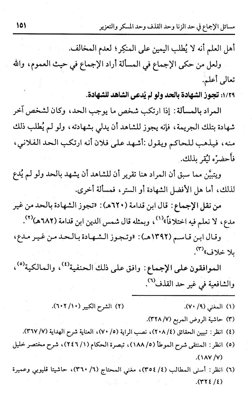 [29/ 1] تجوز الشهادة بالحد ولو لم يُدعى الشاهد للشهادة.
