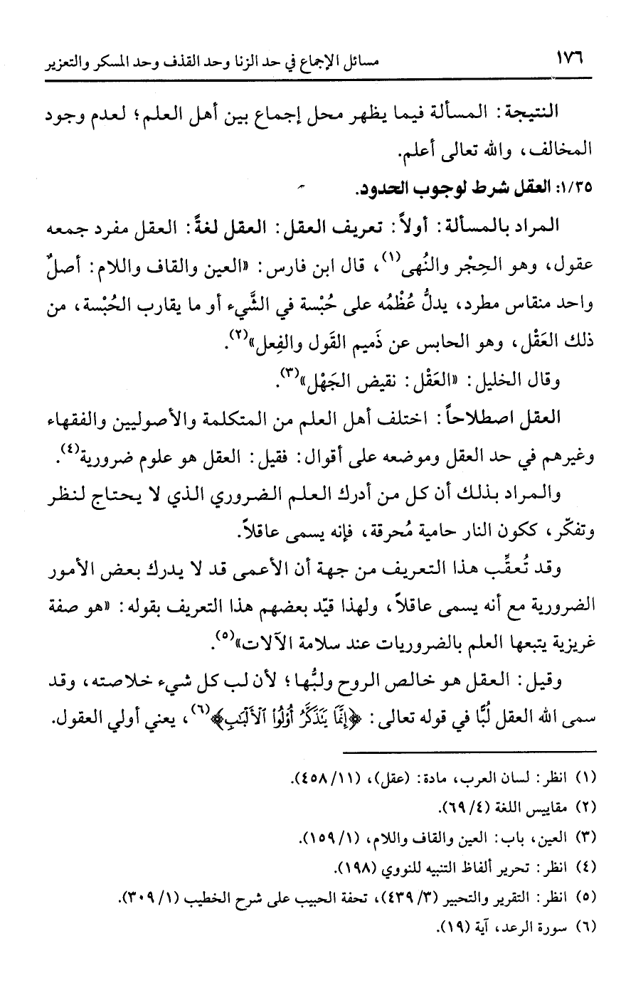 (¬1) انظر: لسان العرب، مادة: (عقل)، (11/ 458).