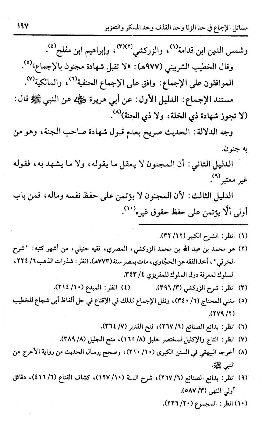 وقال الخطيب الشربيني (977 هـ): "لا تقبل شهادة مجنون بالإجماع" (¬5).