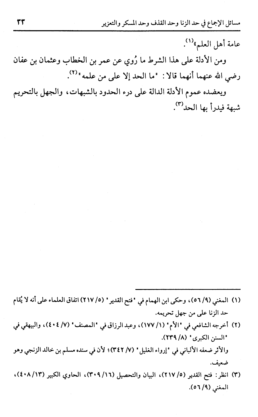 (¬1) المغني (9/ 56)، وحكى ابن الهمام في "فتح القدير" (5/ 217) اتفاق العلماء على أنه لا يُقام حد الزنا على من جهل تحريمه.