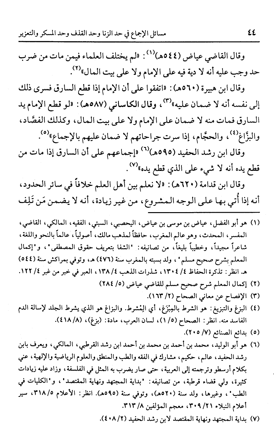 وقال ابن قدامة (620 هـ): "لا نعلم بين أهل العلم خلافًا في سائر الحدود، أنه إذا أُتي بها على الوجه المشروع، من غير زيادة، أنه لا يضمن مَن تَلِف