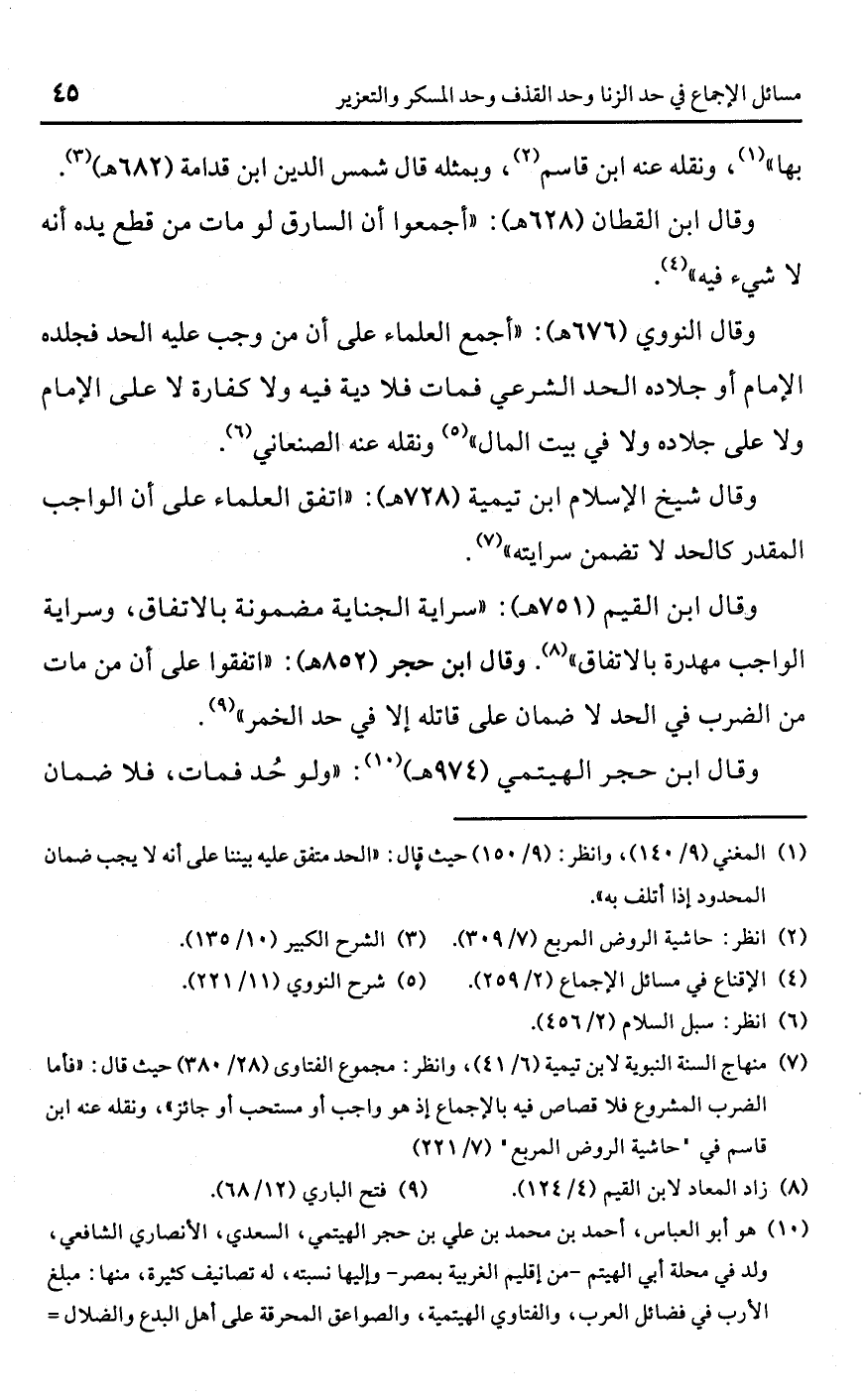 (¬1) المغني (9/ 140)، وانظر: (9/ 150) حيث قال: "الحد متفق عليه بيننا على أنه لا يجب ضمان المحدود إذا أتلف به".
