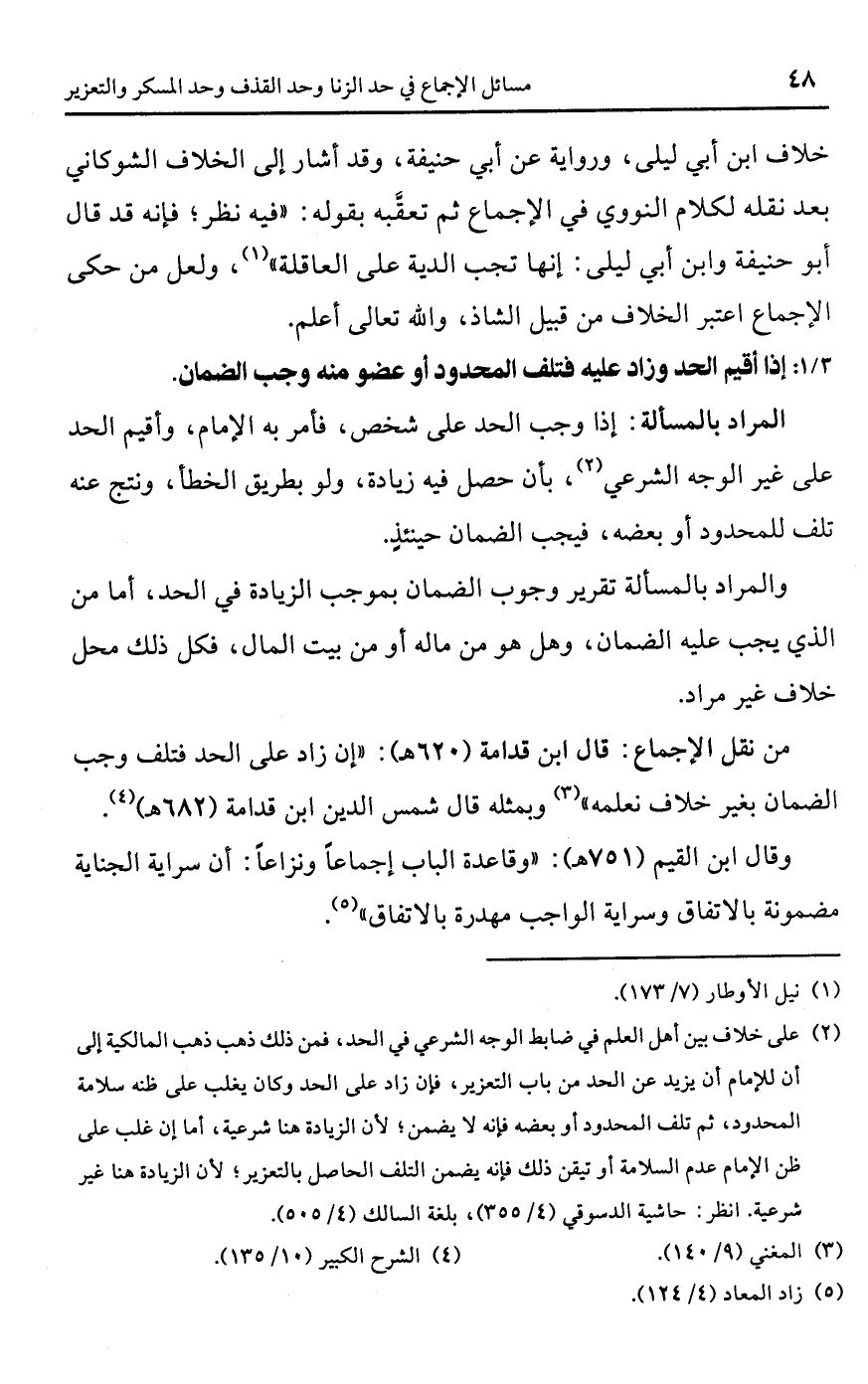 • من نقل الإجماع: قال ابن قدامة (620 هـ): "إن زاد على الحد فتلف وجب الضمان بغير خلاف نعلمه" (¬3) وبمثله قال شمس الدين ابن قدامة (682 هـ) (¬4).