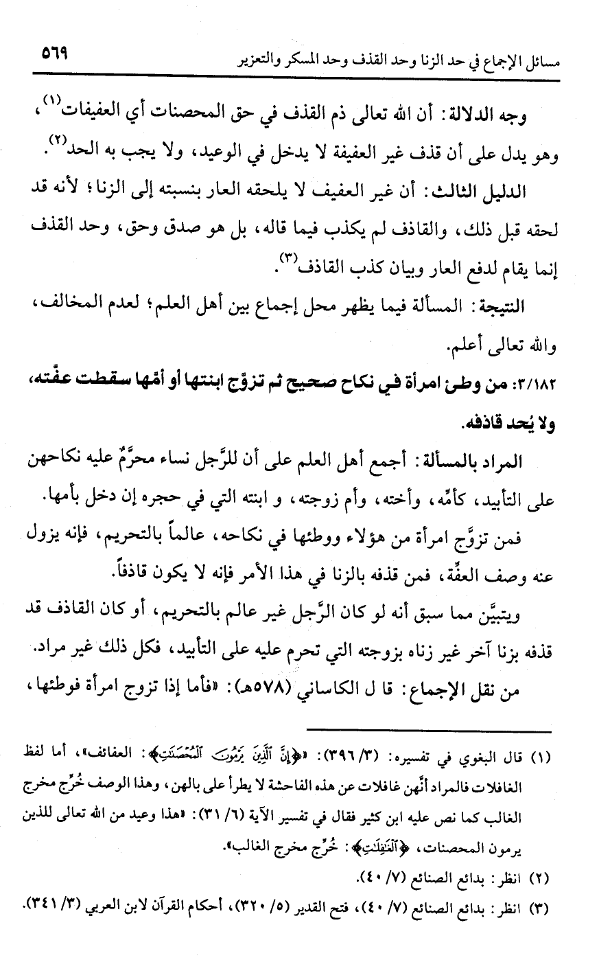 (¬3) انظر: بدائع الصنائع (7/ 40)، فتح القدير (5/ 320)، أحكام القرآن لابن العربي (3/ 341).