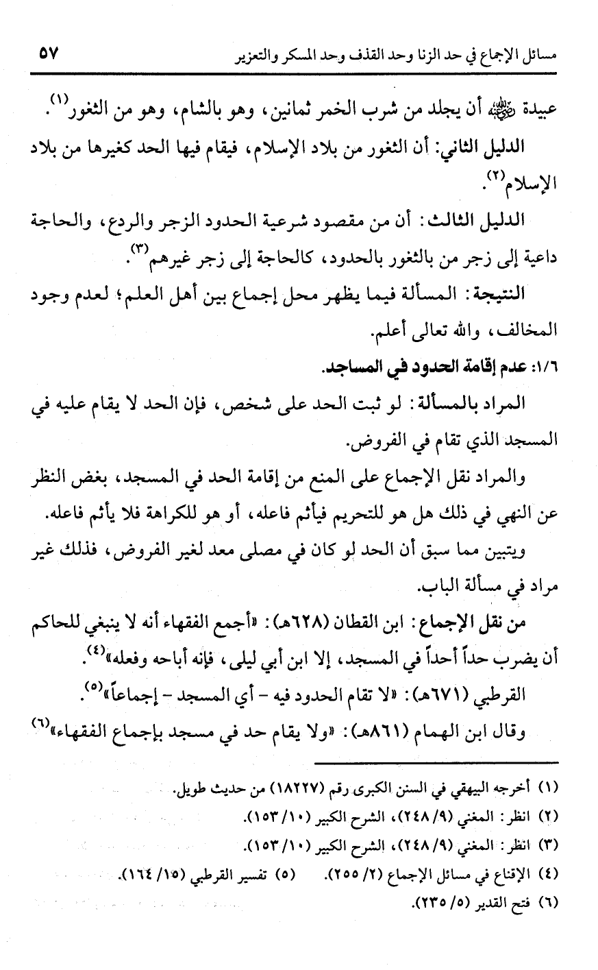 القرطبي (671 هـ): "لا تقام الحدود فيه -أي المسجد- إجماعًا" (¬5).
