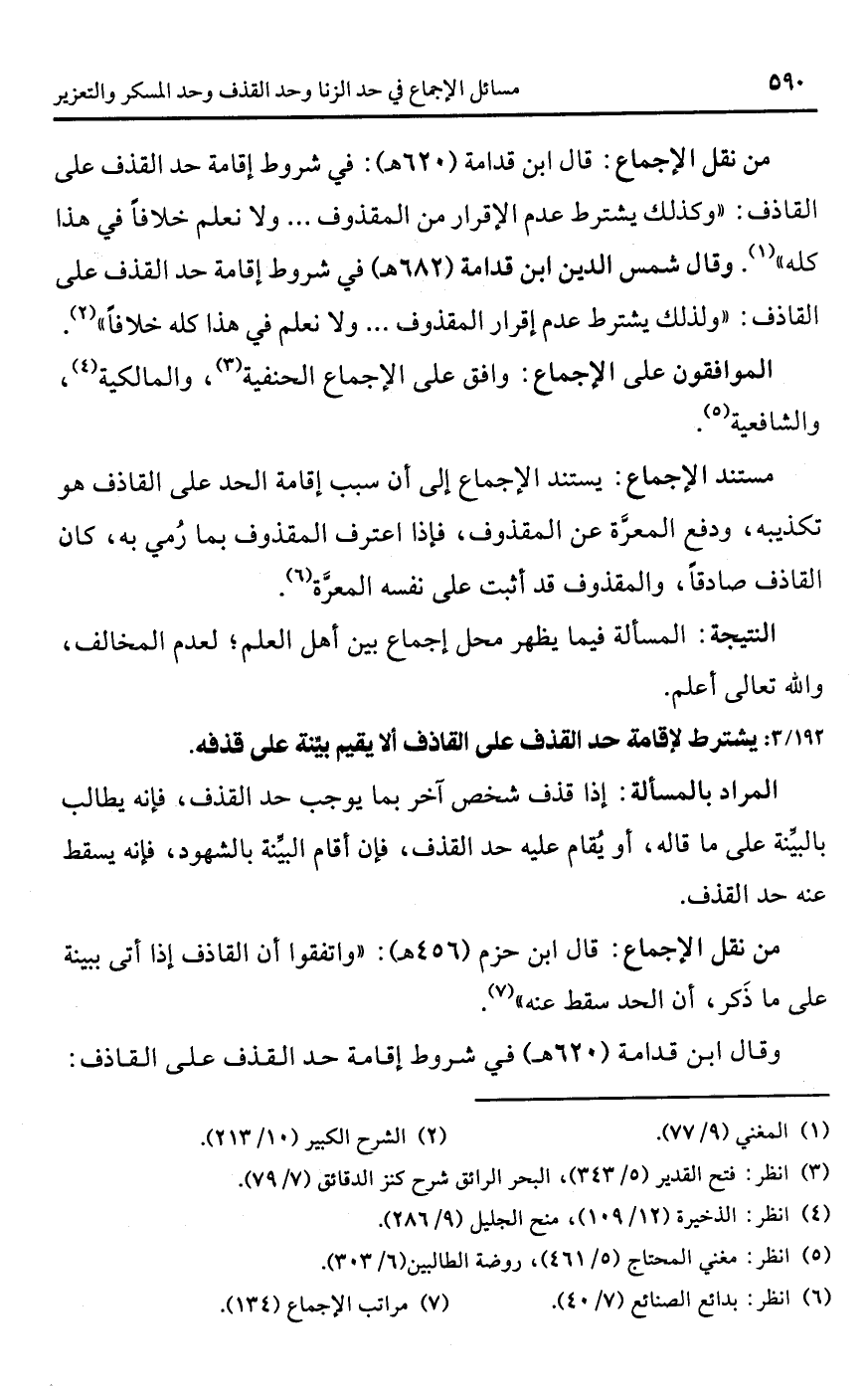 • من نقل الإجماع: قال ابن قدامة (620 هـ): في شروط إقامة حد القذف على القاذف: "وكذلك يشترط عدم الإقرار من المقذوف. . . ولا نعلم خلافًا في هذا كله" (¬1). وقال شمس الدين ابن قدامة (682 هـ) في شروط إقامة حد القذف على القاذف: "ولذلك يشترط عدم إقرار المقذوف. . . ولا نعلم في هذا كله خلافًا" (¬2).
