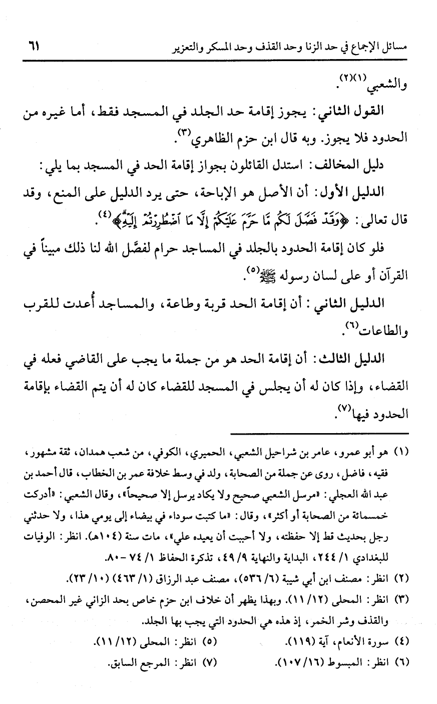 القول الثاني: يجوز إقامة حد الجلد في المسجد فقط، أما غيره من الحدود فلا يجوز. وبه قال ابن حزم الظاهري (¬3).