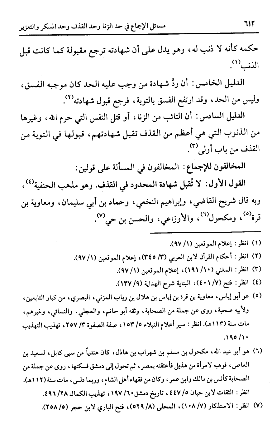 (¬7) انظر: الاستذكار (7/ 108)، المحلى (8/ 529)، فتح الباري لابن حجر (5/ 258).