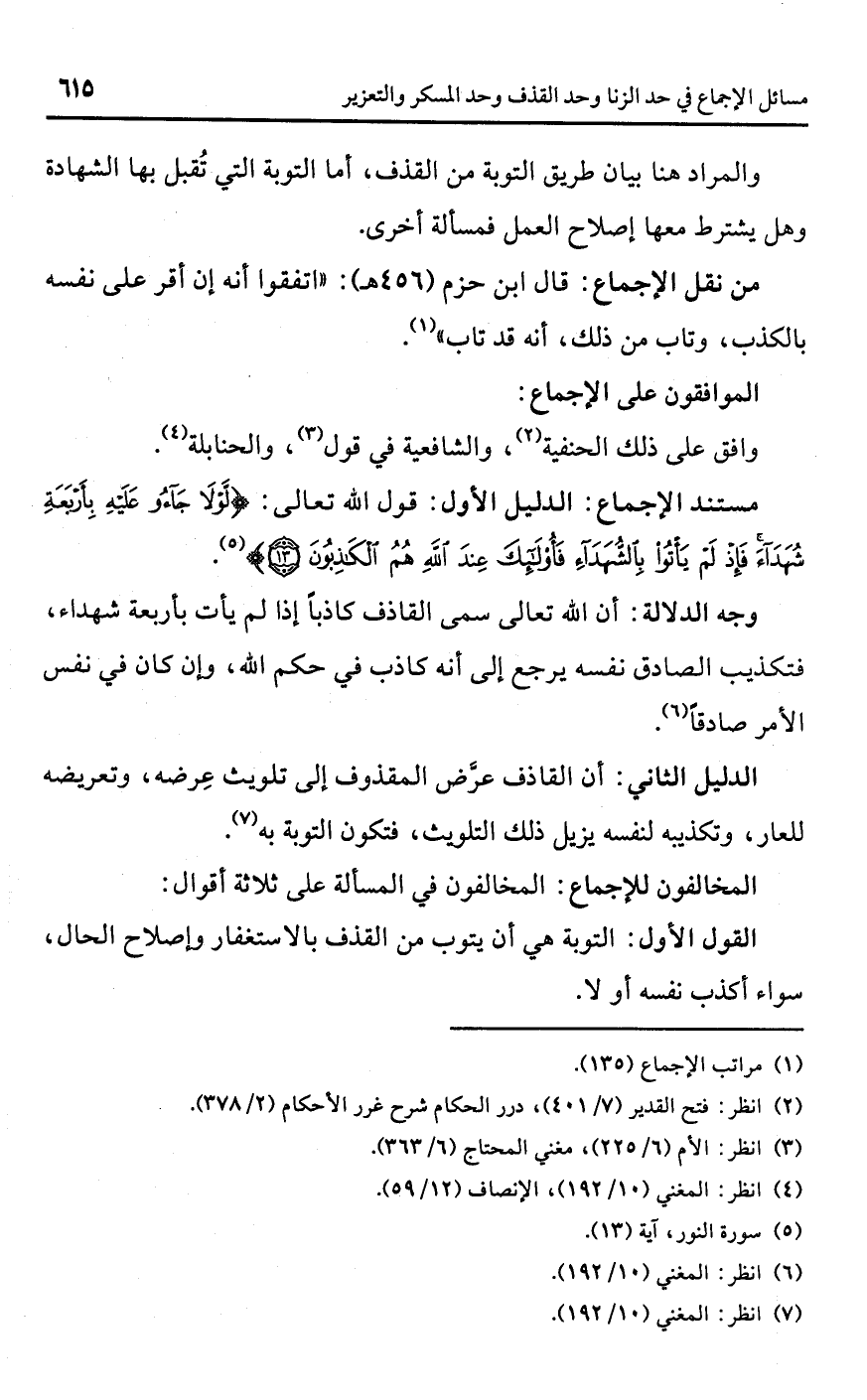 • مستند الإجماع: الدليل الأول: قول اللَّه تعالى: {لَوْلَا جَاءُوا عَلَيْهِ بِأَرْبَعَةِ شُهَدَاءَ فَإِذْ لَمْ يَأْتُوا بِالشُّهَدَاءِ فَأُولَئِكَ عِنْدَ اللَّهِ هُمُ الْكَاذِبُونَ (13)} (¬5).