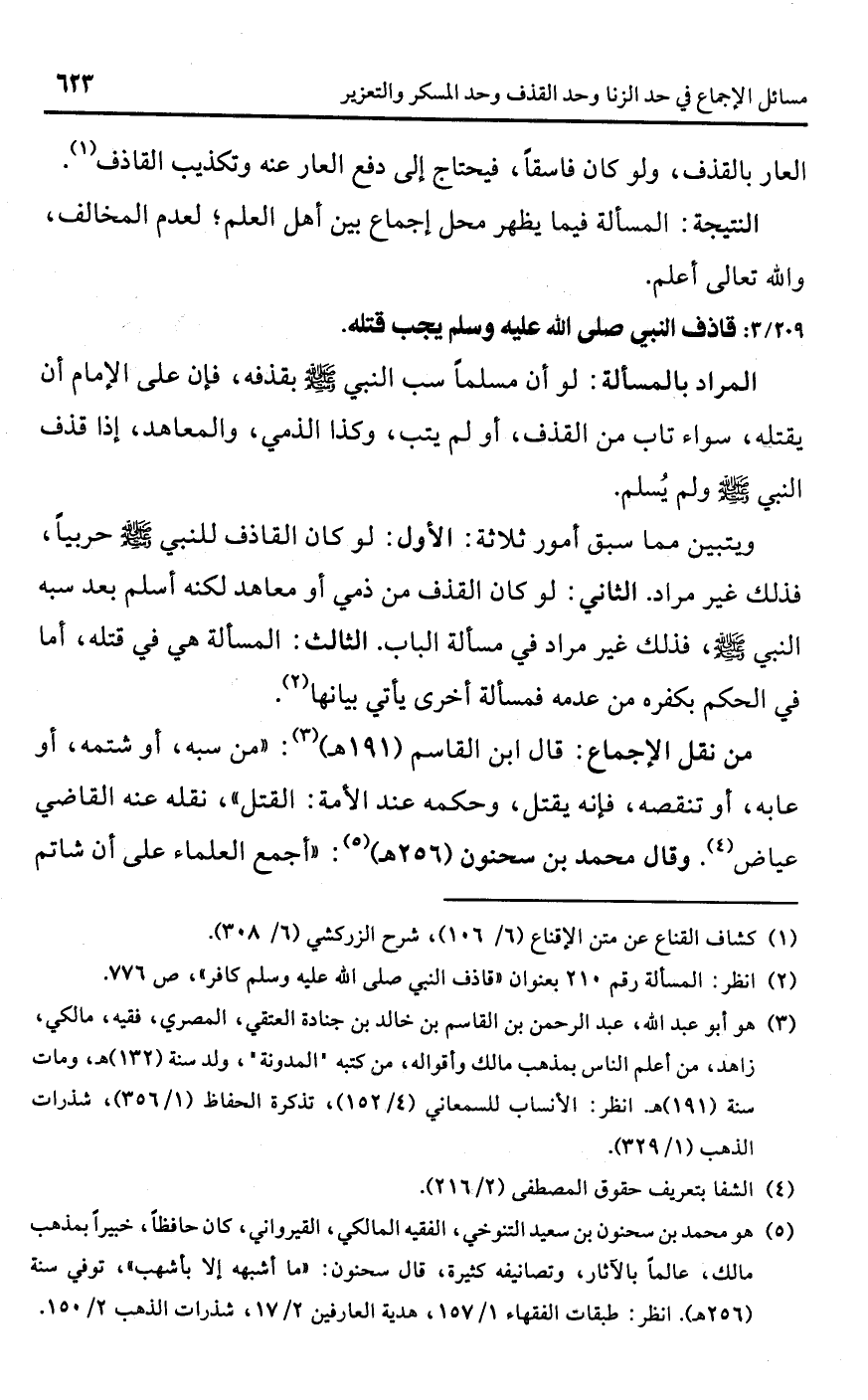 (¬2) انظر: المسألة رقم 210 بعنوان "قاذف النبي صلى اللَّه عليه وسلم كافر"، ص 776.