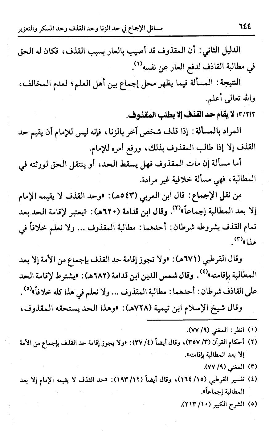 (¬4) تفسير القرطبي (15/ 164)، وقال أيضًا (12/ 193): "حد القذف لا يقيمه الإمام إلا بعد المطالبة إجماعًا".
