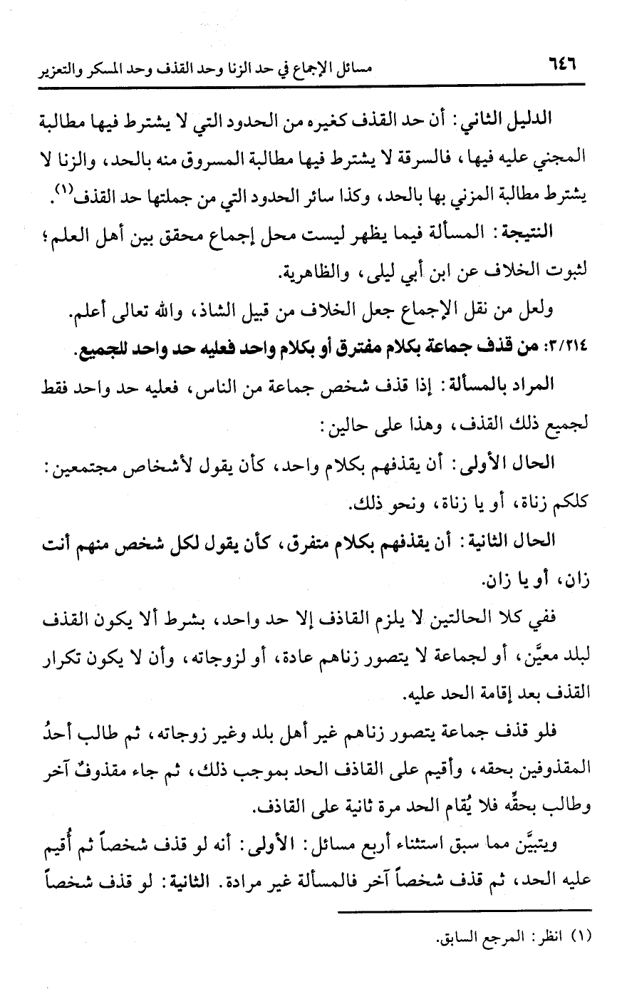 [214/ 3] من قذف جماعة بكلام مفترق أو بكلام واحد فعليه حد واحد للجميع.