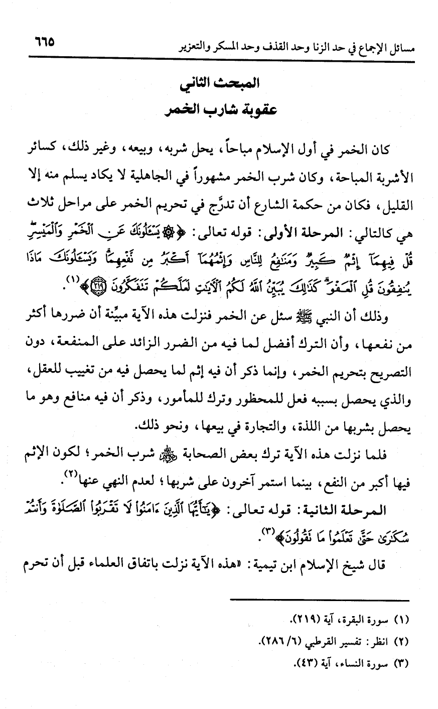 المرحلة الثانية: قوله تعالى: {يَاأَيُّهَا الَّذِينَ آمَنُوا لَا تَقْرَبُوا الصَّلَاةَ وَأَنْتُمْ سُكَارَى حَتَّى تَعْلَمُوا مَا تَقُولُونَ} (¬3).