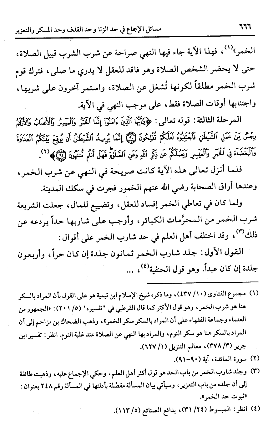 الخمر" (¬1)، فهذا الآية جاء فيها النهي صراحة عن شرب الشرب قبيل الصلاة، حتى لا يحضر الشخص الصلاة وهو فاقد للعقل لا يدري ما صلى، فترك قوم شرب الخمر مطلقًا لكونها تُشغل عن الصلاة، واستمر آخرون على شربها، واجتنابها أوقات الصلاة فقط، على موجب النهي في الآية.