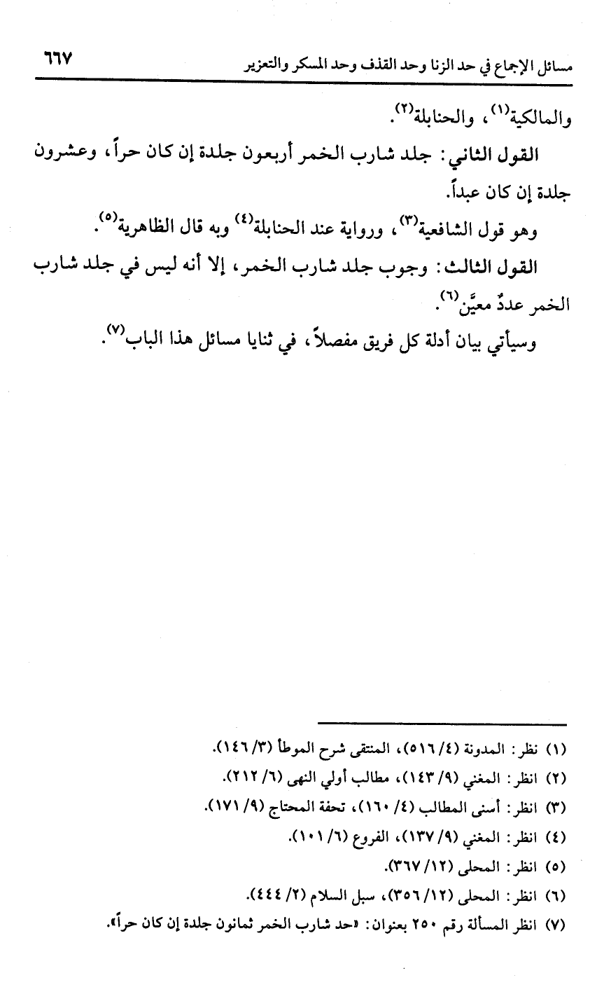 (¬7) انظر المسألة رقم 250 بعنوان: "حد شارب الخمر ثمانون جلدة إن كان حرًا".