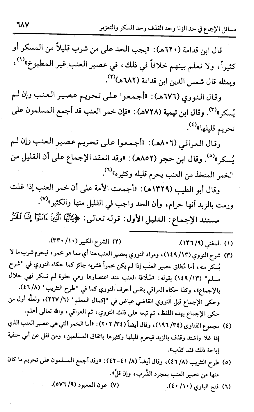 (¬5) طرح التثريب (8/ 46)، وقال أيضًا (8/ 41 - 42): "وقد أجمع المسلمون على تحريم ما كان منها من عصير العنب بمجرد الشُّرب، وإن قلَّ".