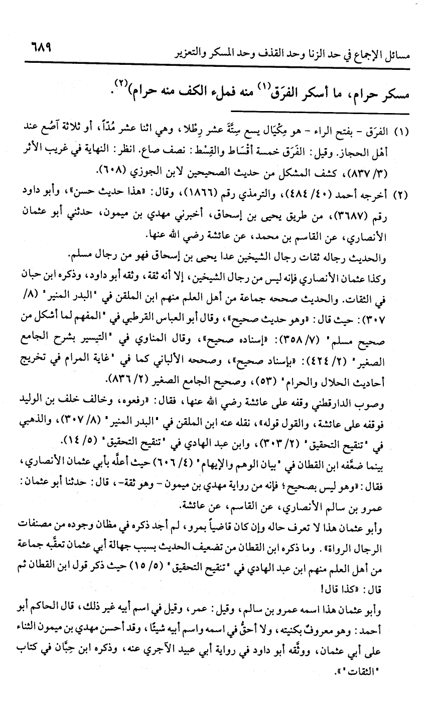 (¬2) أخرجه أحمد (40/ 484)، والترمذي رقم (1866)، وقال: "هذا حديث حسن"، وأبو داود رقم (3687)، من طريق يحيى بن إسحاق، أخبرني مهدي بن ميمون، حدثني أبو عثمان الأنصاري، عن القاسم بن محمد، عن عائشة رضي اللَّه عنها.