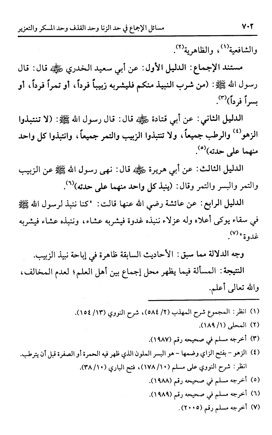 • وجه الدلالة مما سبق: الأحاديث السابقة ظاهرة في إباحة نبيذ الزبيب.Rالمسألة فيما يظهر محل إجماع بين أهل العلم؛ لعدم المخالف، واللَّه تعالى أعلم.