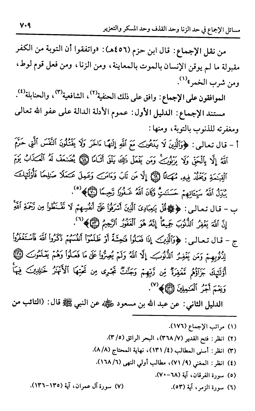 • من نقل الإجماع: قال ابن حزم (456 هـ): "واتفقوا أن التوبة من الكفر مقبولة ما لم يوقن الإنسان بالموت بالمعاينة، ومن الزنا، ومن فعل قوم لوط، ومن شرب الخمر" (¬1).