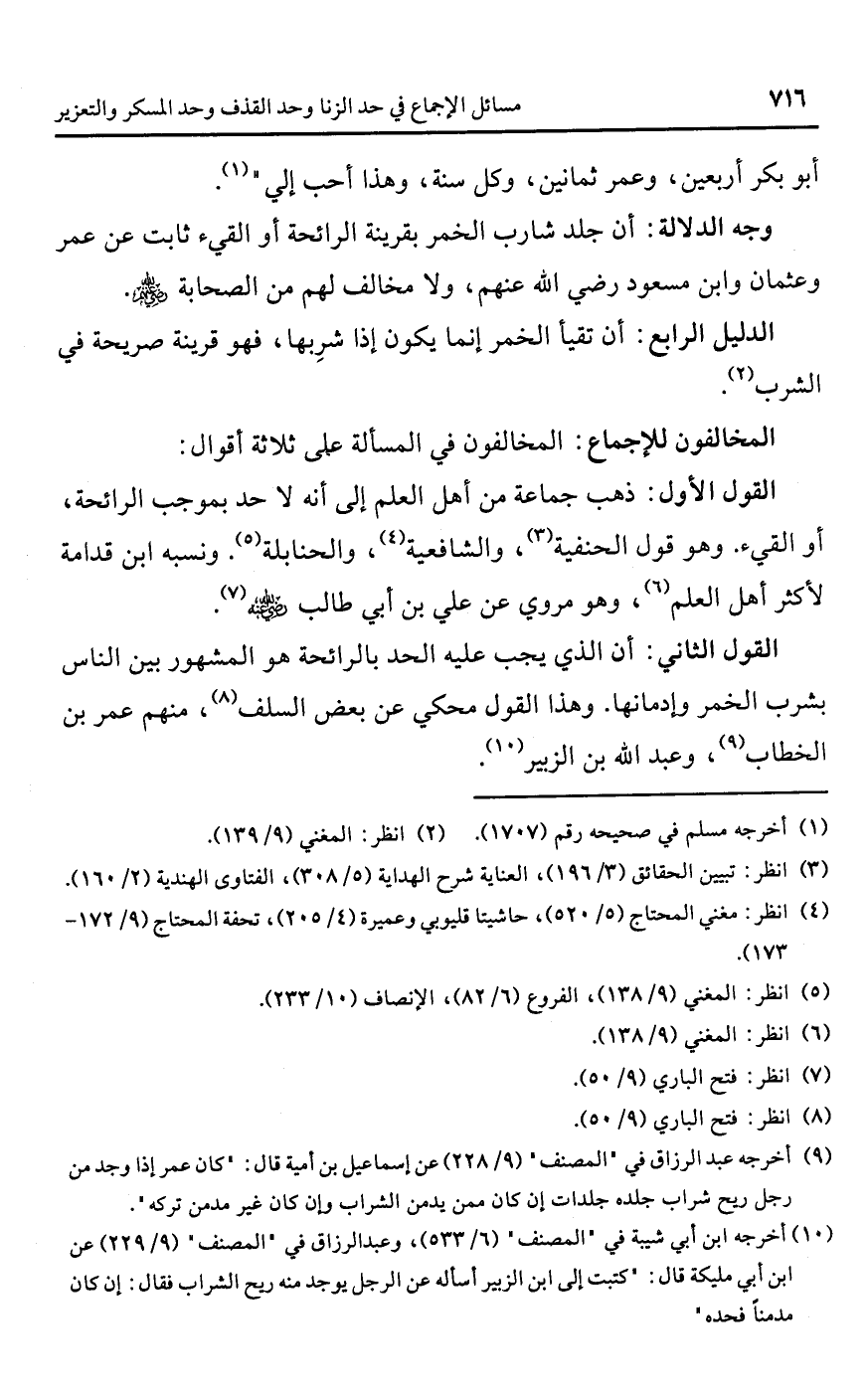 (¬10) أخرجه ابن أبي شيبة في "المصنف" (6/ 533)، وعبد الرزاق في "المصنف" (9/ 229) عن ابن أبي مليكة قال: "كتبت إلى ابن الزبير أصاله عن الرجل يوجد منه ريح الشراب فقال: إن كان مدمنًا فحده".