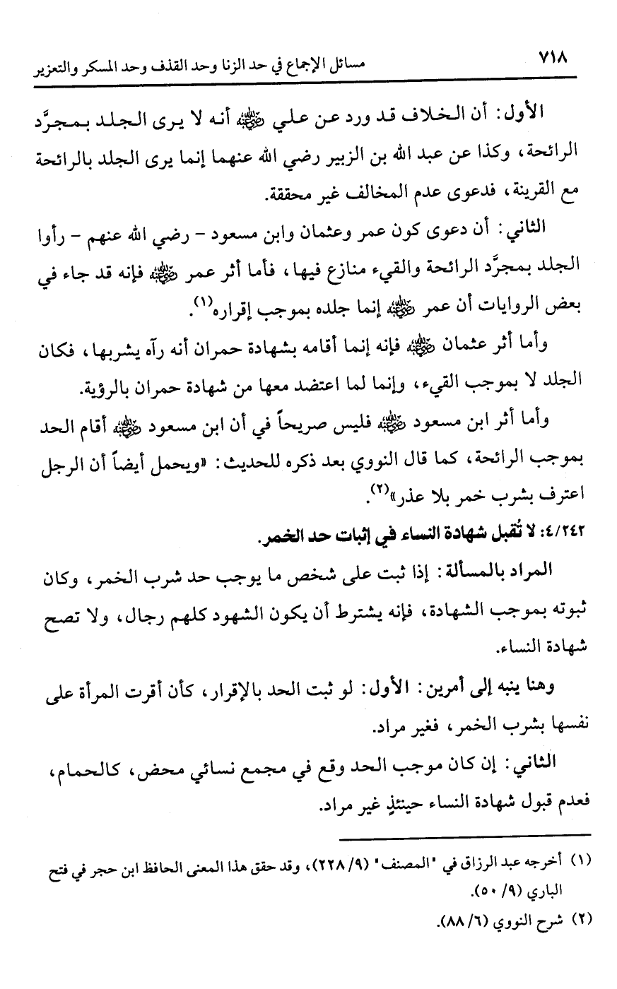 [242/ 4] لا تُقبل شهادة النساء في إثبات حد الخمر.