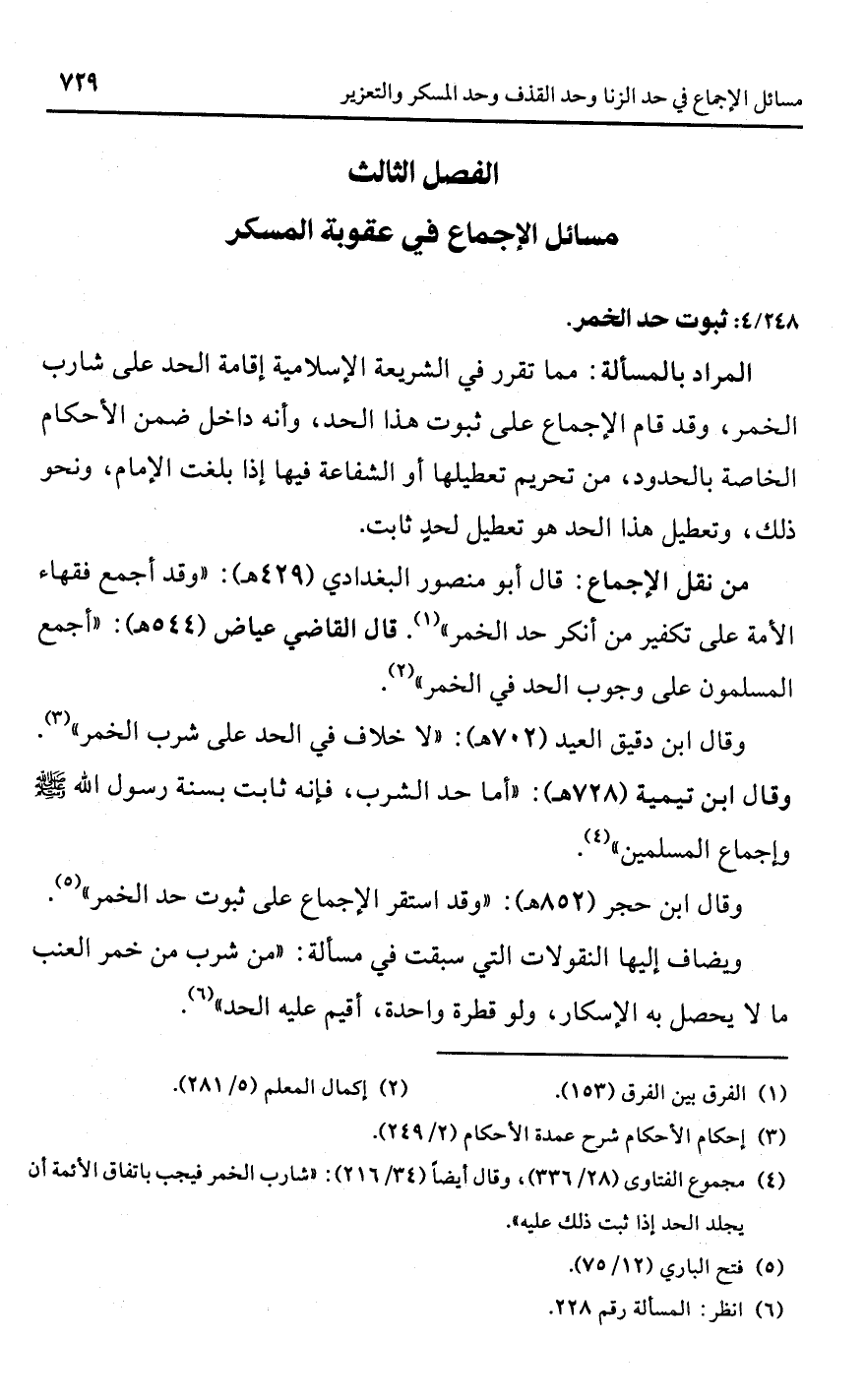 الفصل الثالث مسائل الإجماع في عقوبة المسكر