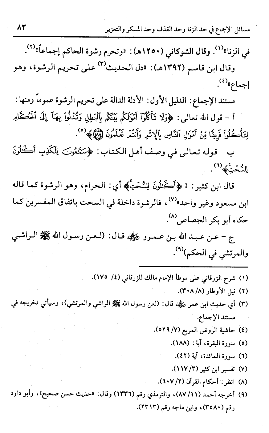 في الزنا" (¬1). وقال الشوكاني (1250 هـ): "وتحرم رشوة الحاكم إجماعًا" (¬2).