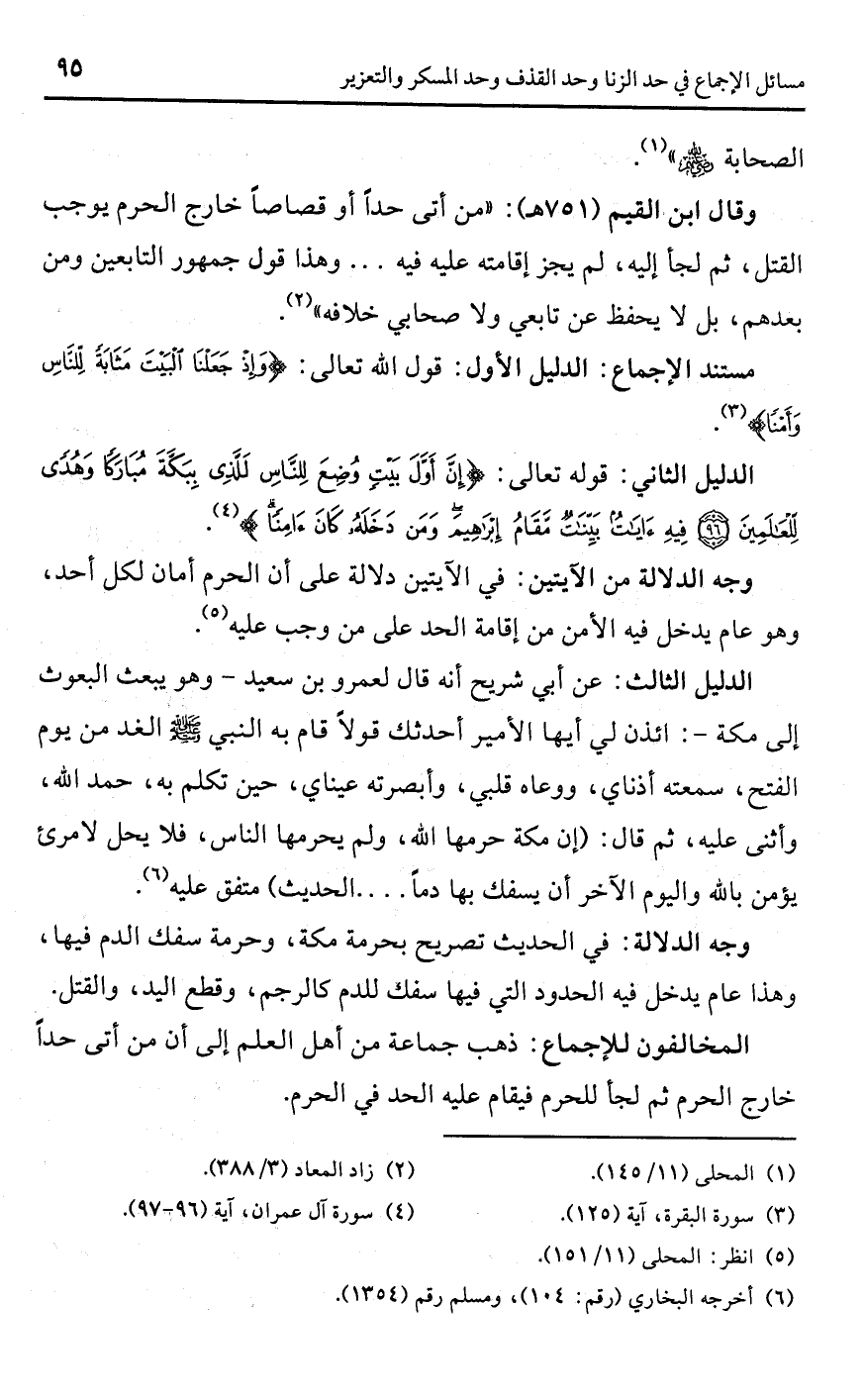• مستند الإجماع: الدليل الأول: قول اللَّه تعالى: {وَإِذْ جَعَلْنَا الْبَيْتَ مَثَابَةً لِلنَّاسِ وَأَمْنًا} (¬3).