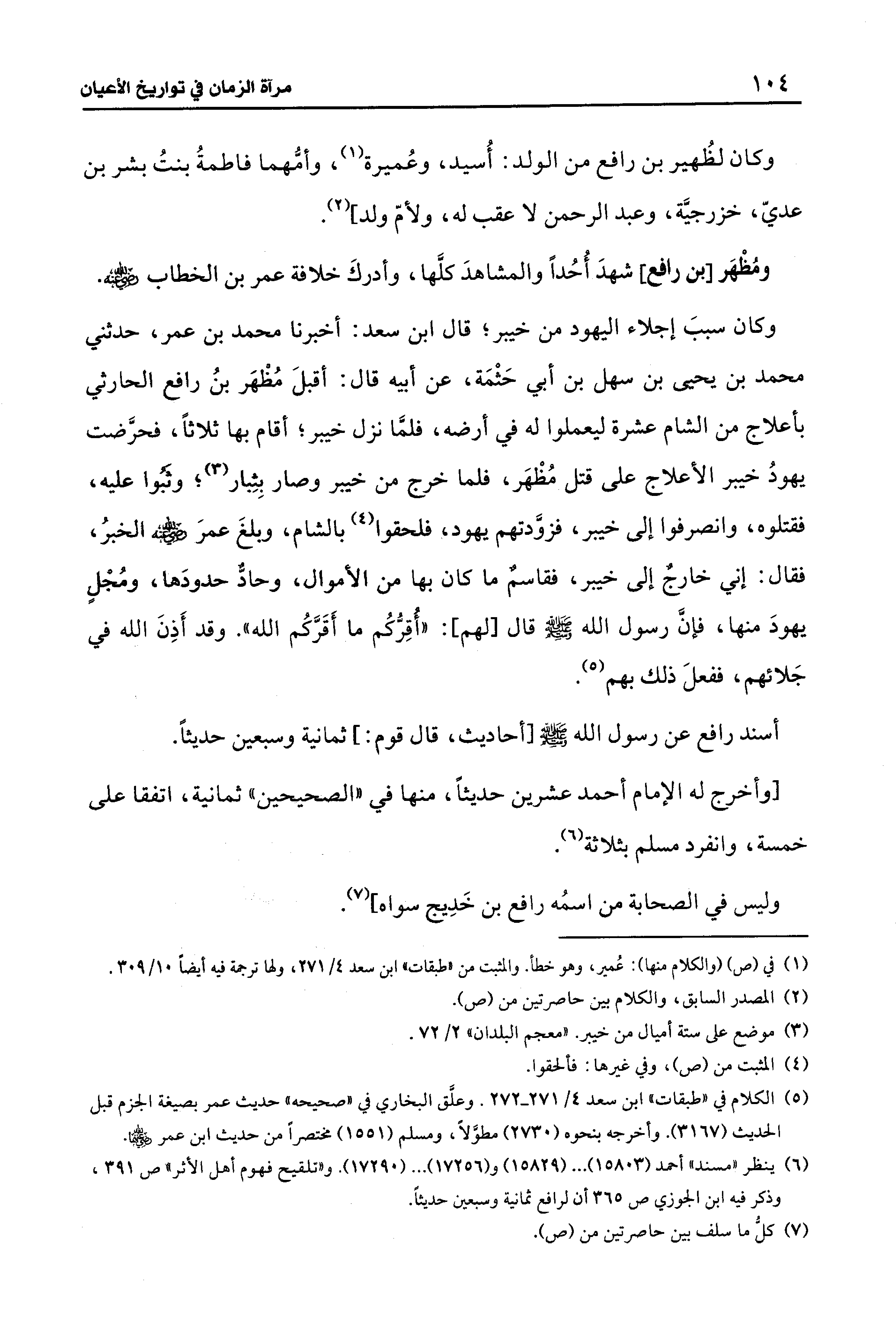 ومُظْهَر [بن رافع] شهدَ أُحُدًا والمشاهدَ كلَّها، وأدركَ خلافة عمر بن الخطاب - رضي الله عنه -.