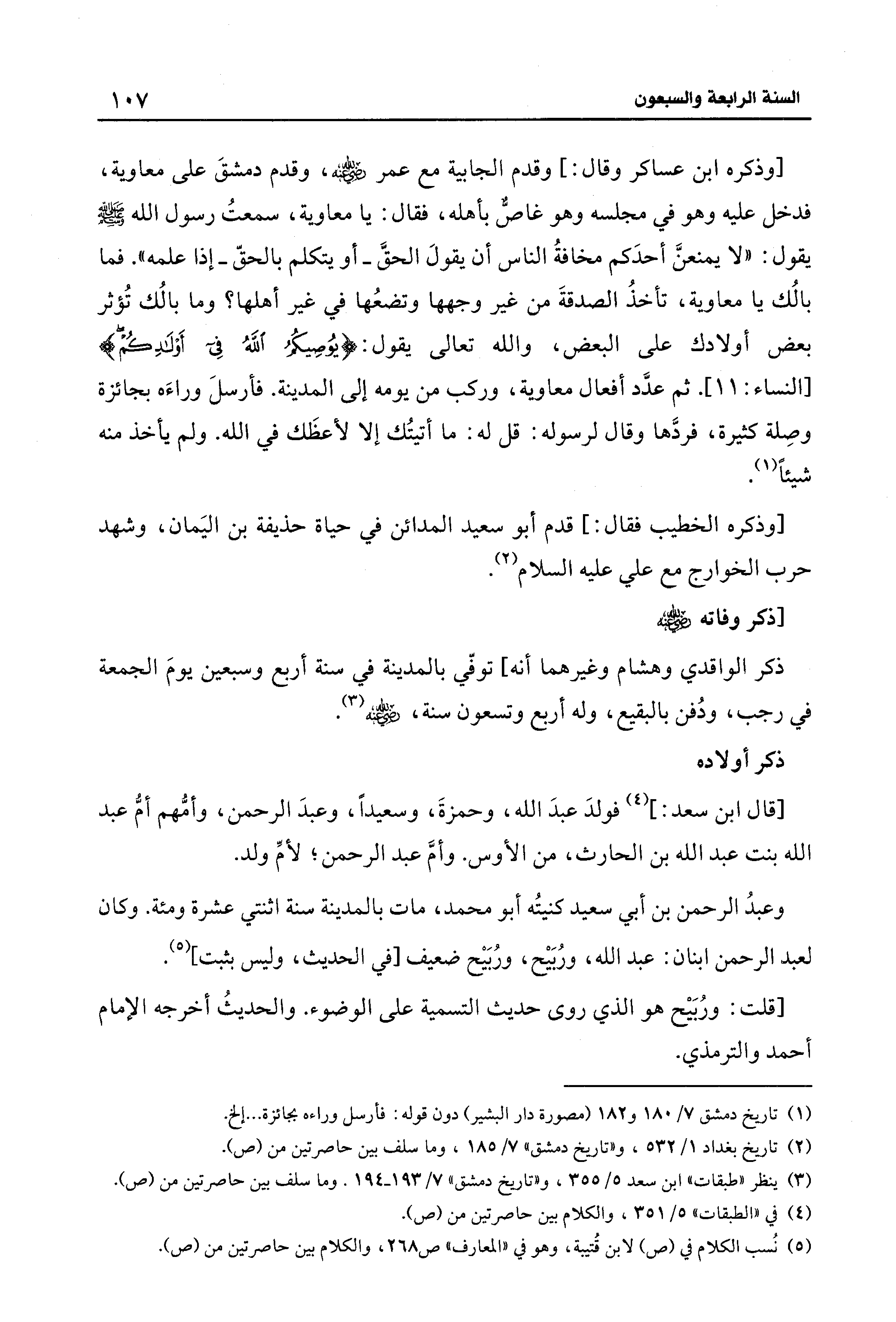 (¬3) ينظر "طبقات" ابن سعد 5/ 355، و "تاريخ دمشق" 7/ 193 - 194. وما سلف بين حاصرتين من (ص).