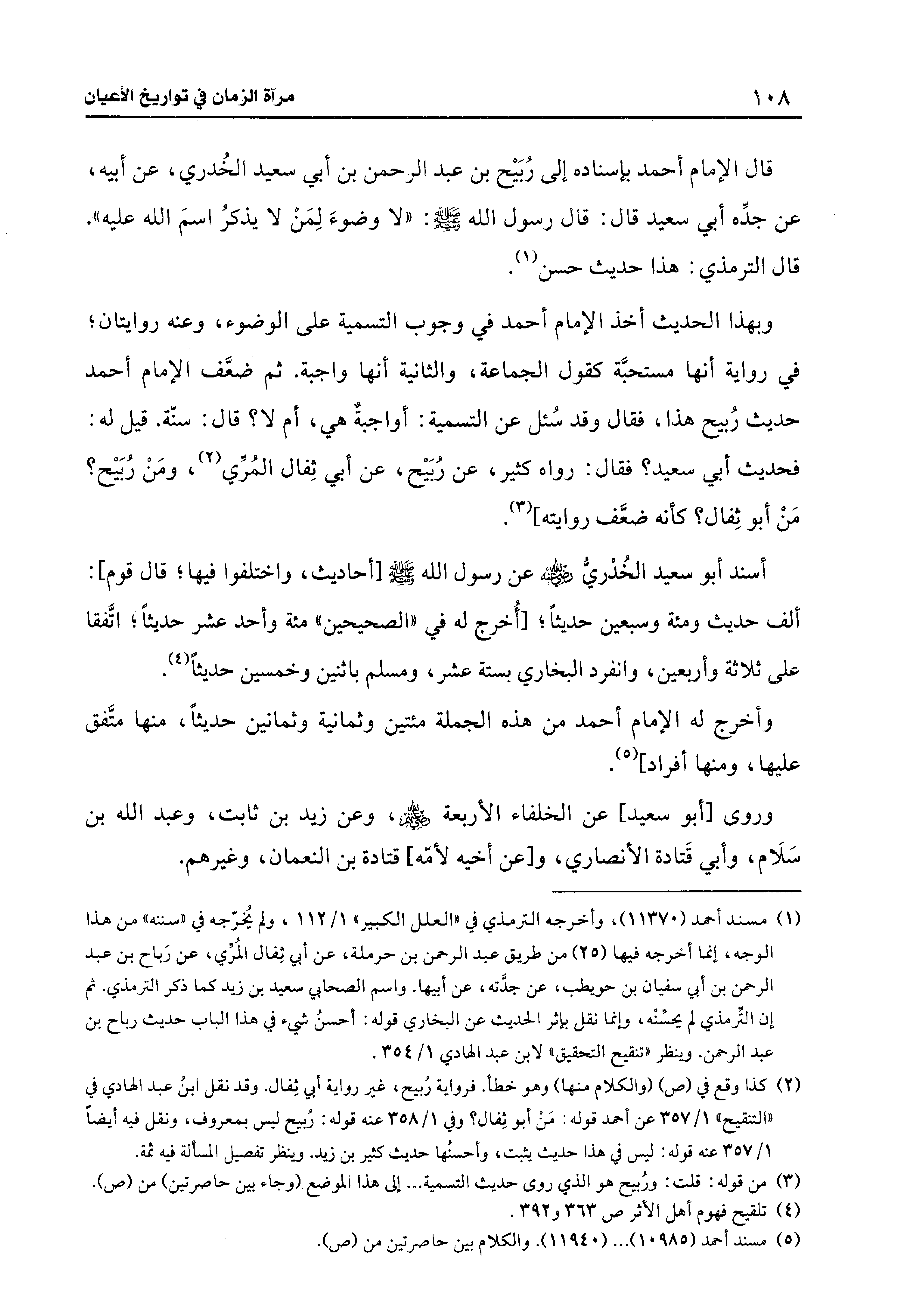 قال الإِمام أحمد بإسناده إلى رُبَيح بن عبد الرحمن بن أبي سعيد الخُدري، عن أبيه، عن جدِّه أبي سعيد قال: قال رسول الله - صلى الله عليه وسلم -: "لا وضوءَ لِمَنْ لا يذكرُ اسمَ الله عليه". قال الترمذي: هذا حديث حسن (¬1).