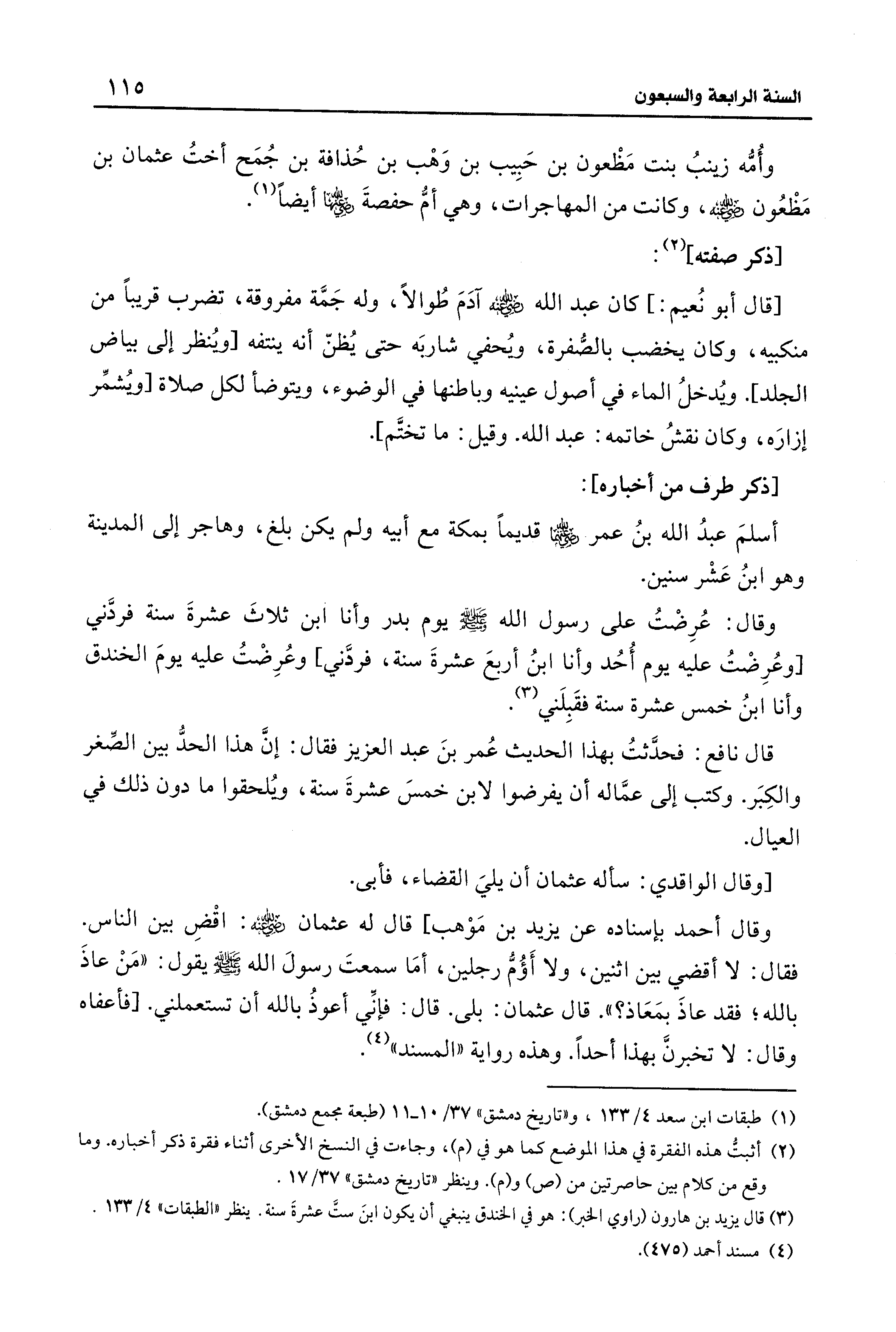 (¬3) قال يزيد بن هارون (راوي الخبر): هو في الخندق ينبغي أن يكون ابنَ ستَّ عشرةَ سنة. ينظر "الطبقات" 4/ 133.