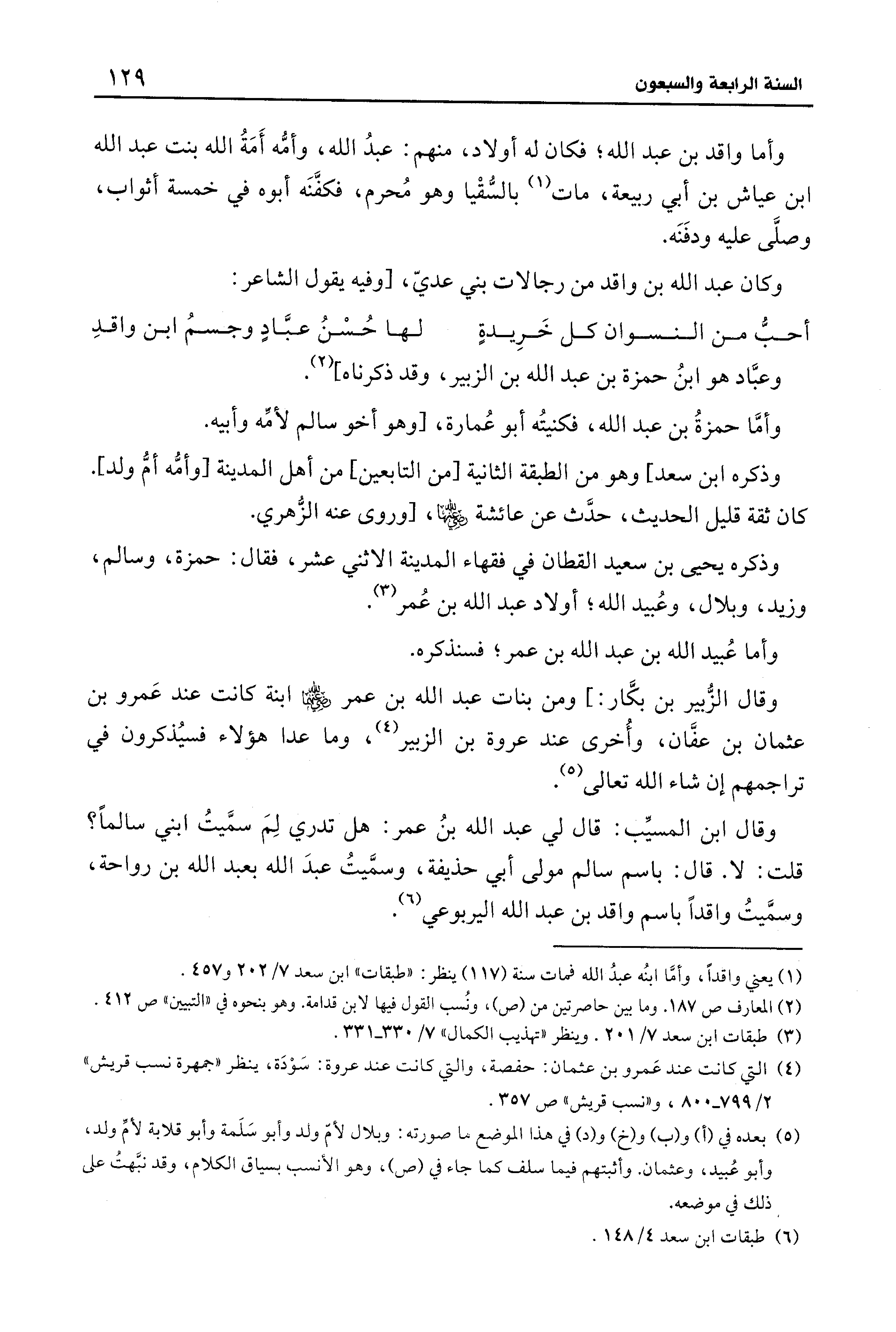 (¬1) يعني واقدًا، وأمَّا ابنُه عبدُ الله فمات سنة (117) ينظر: "طبقات" ابن سعد 7/ 202 و 457.