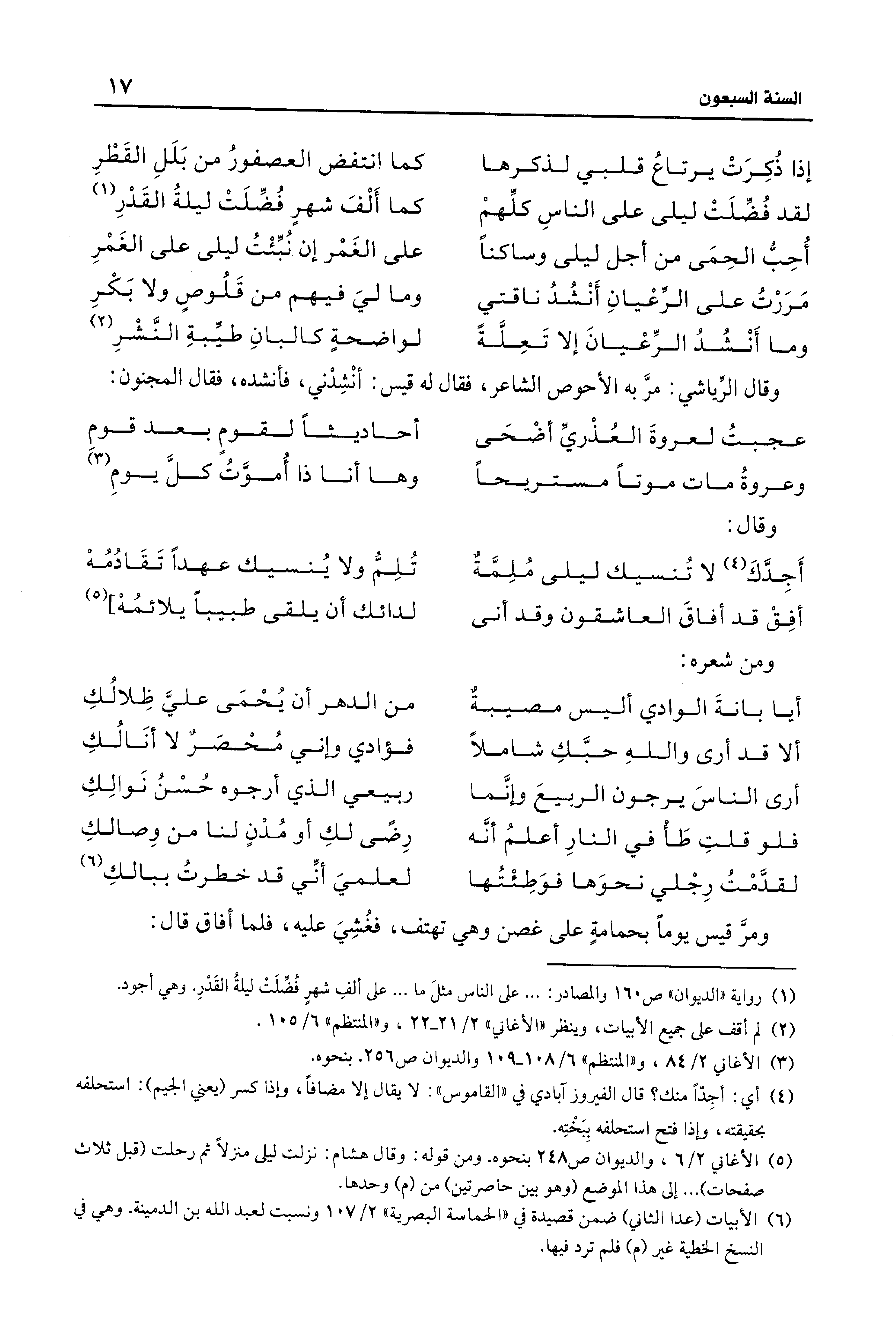 (¬5) الأغاني 2/ 6، والديوان ص 248 بنحوه. ومن قوله: وقال هشام: نزلت ليلى منزلًا ثم رحلت (قبل ثلاث صفحات) ... إلى هذا الموضع (وهو بين حاصرتين) من (م) وحدها.