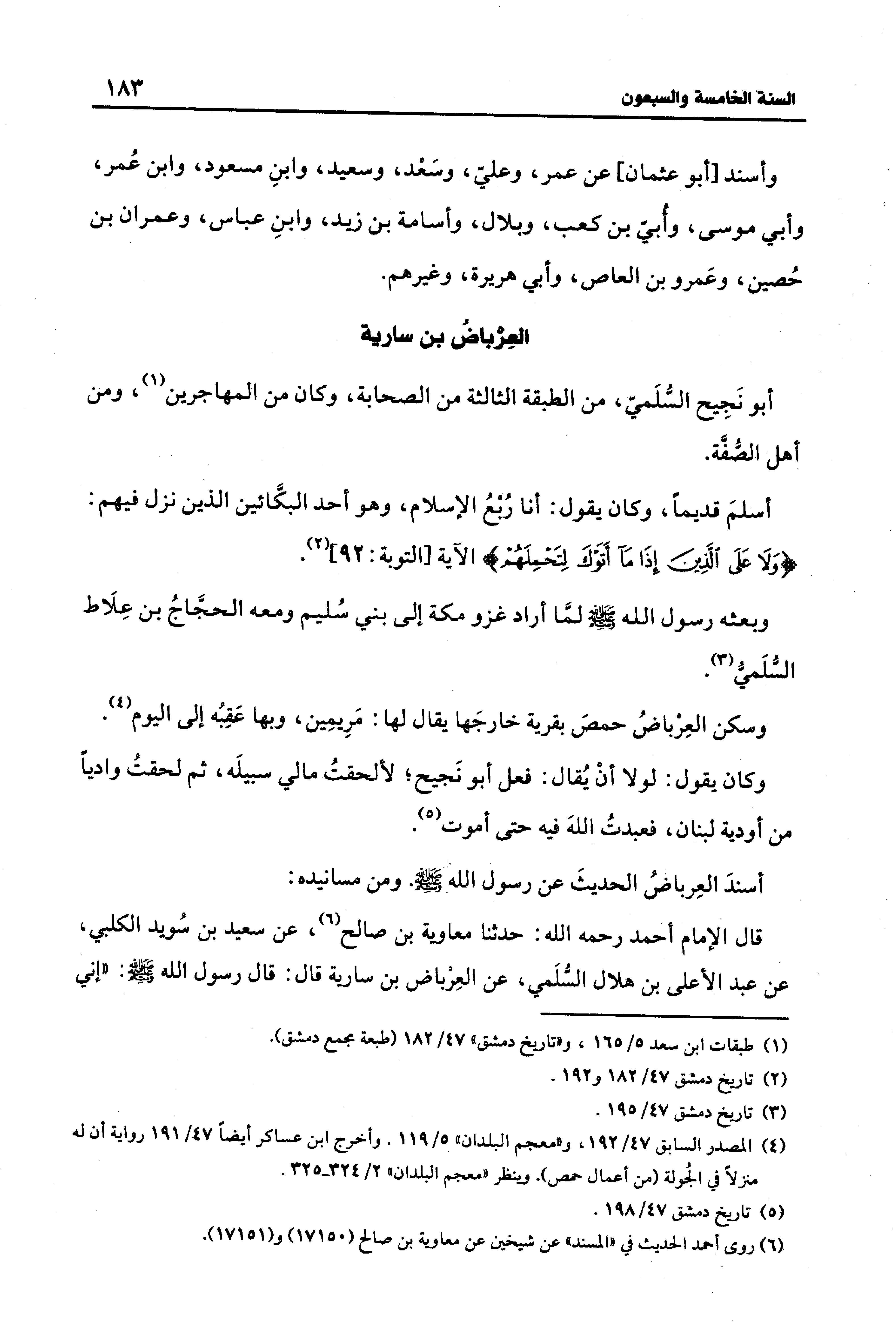 (¬1) طبقات ابن سعد 5/ 165، و"تاريخ دمشق" 47/ 182 (طبعة مجمع دمشق).