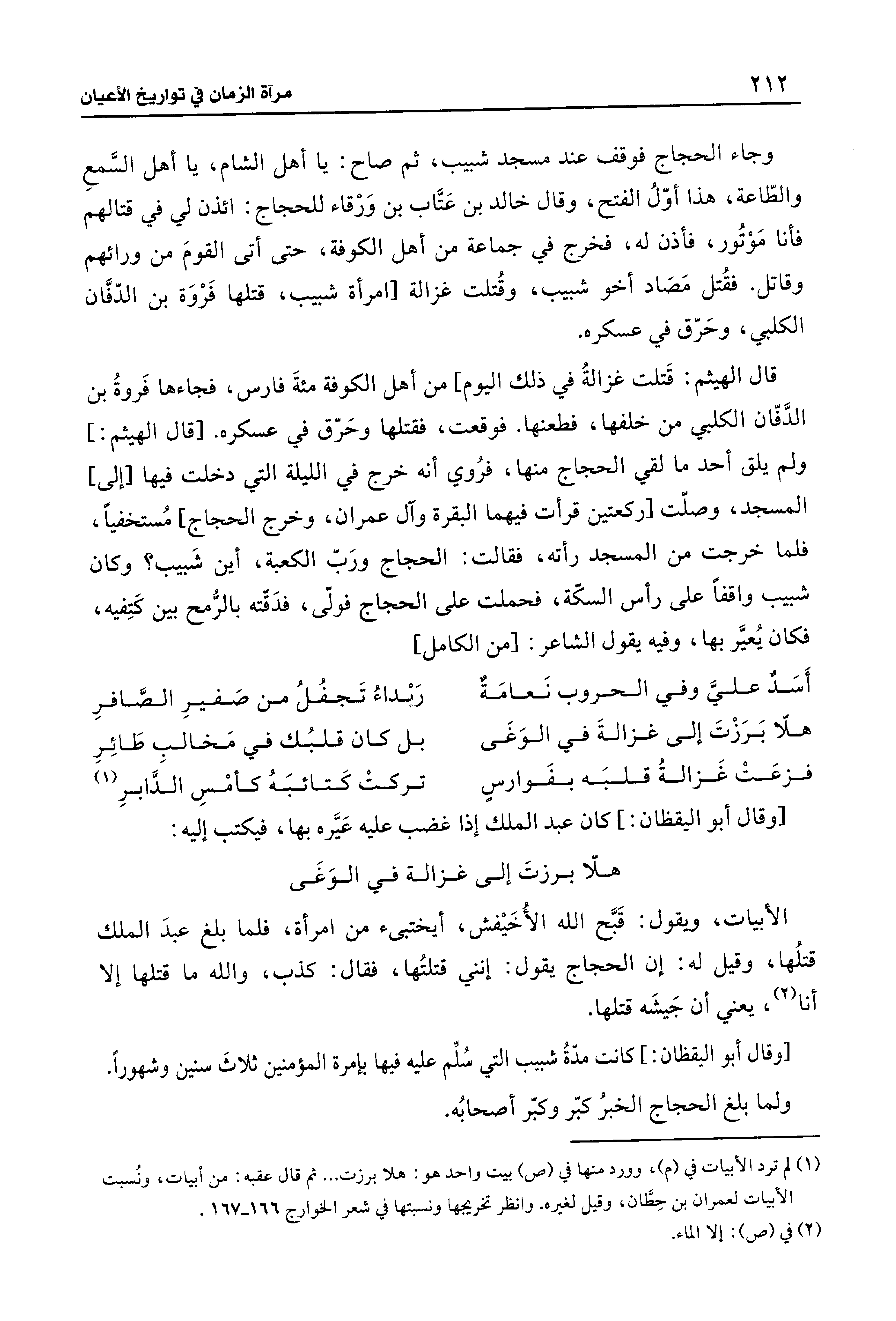 هلّا بَرَزْتَ إلى غزالةَ في الوَعَى ... بل كان قلبُك في مَخالبِ طَائِرِ