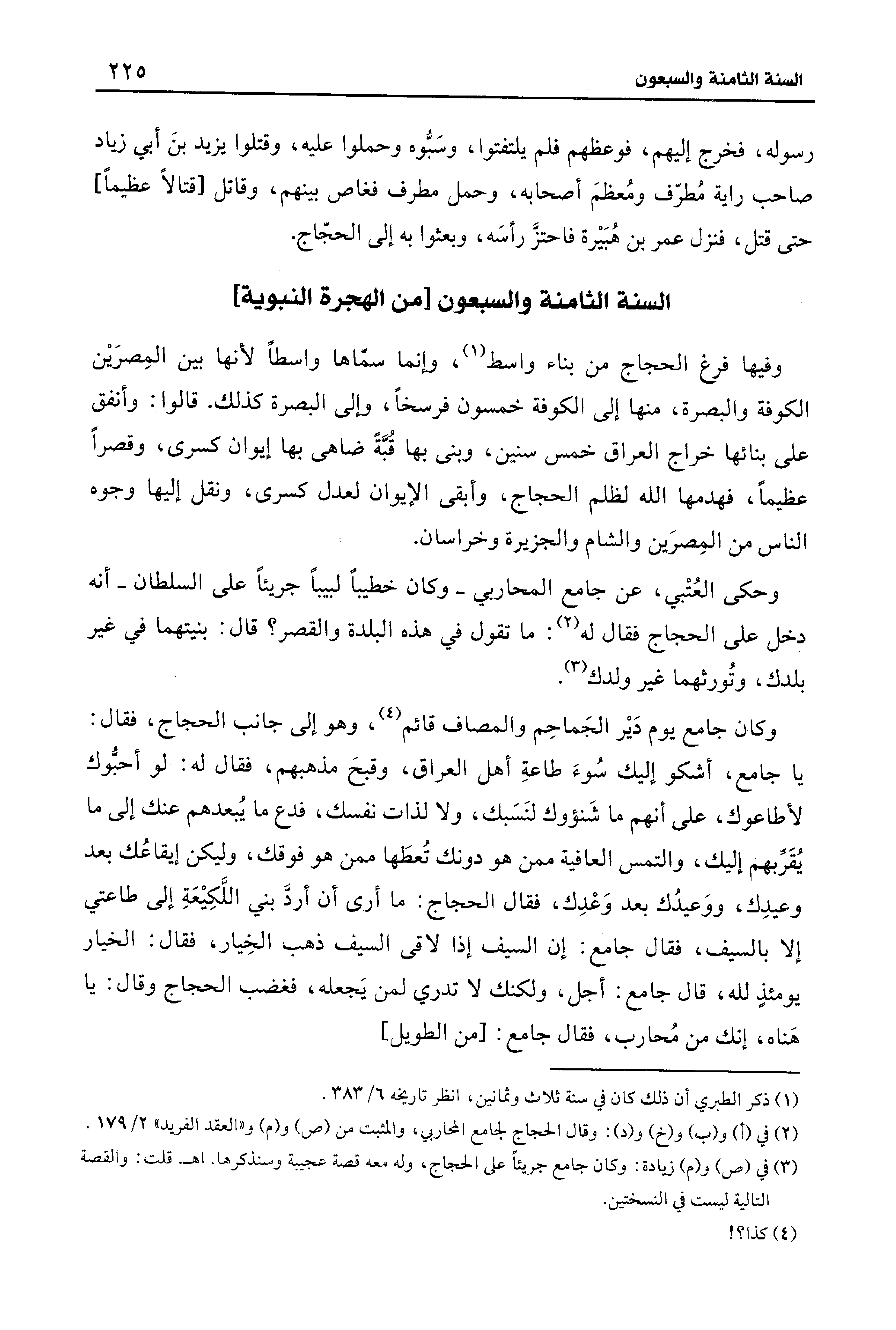 (¬3) في (ص) و (م) زيادة: وكان جامع جريئًا على الحجاج، وله معه قصة عجيبة وسنذكرها. اهـ. قلت: والقصة التالية ليست في النسختين.