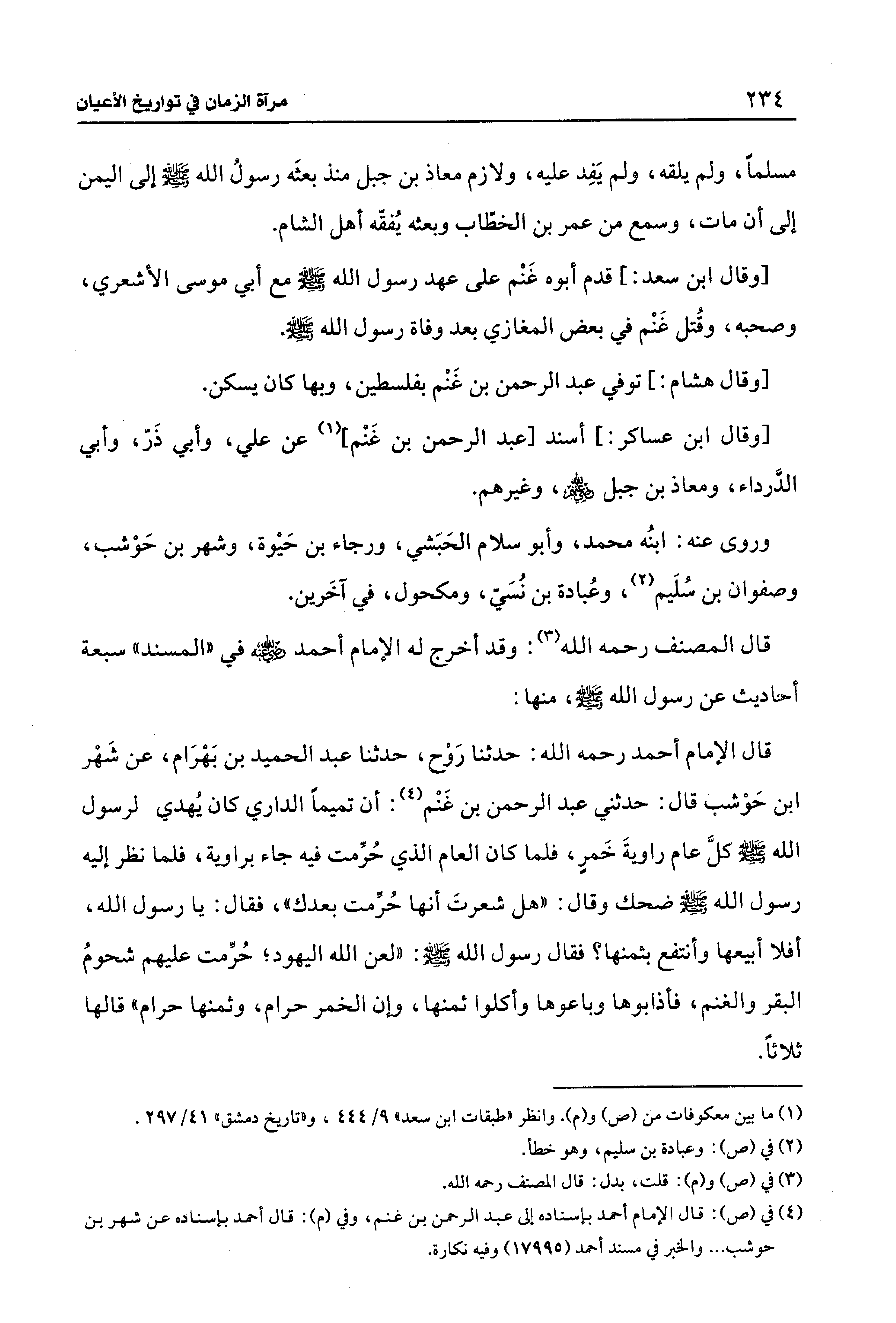 (¬4) في (ص): قال الإمام أحمد بإسناده إلى عبد الرحمن بن غنم، وفي (م): قال أحمد بإسناده عن شهر بن حوشب ... والخبر في مسند أحمد (17995) وفيه نكارة.