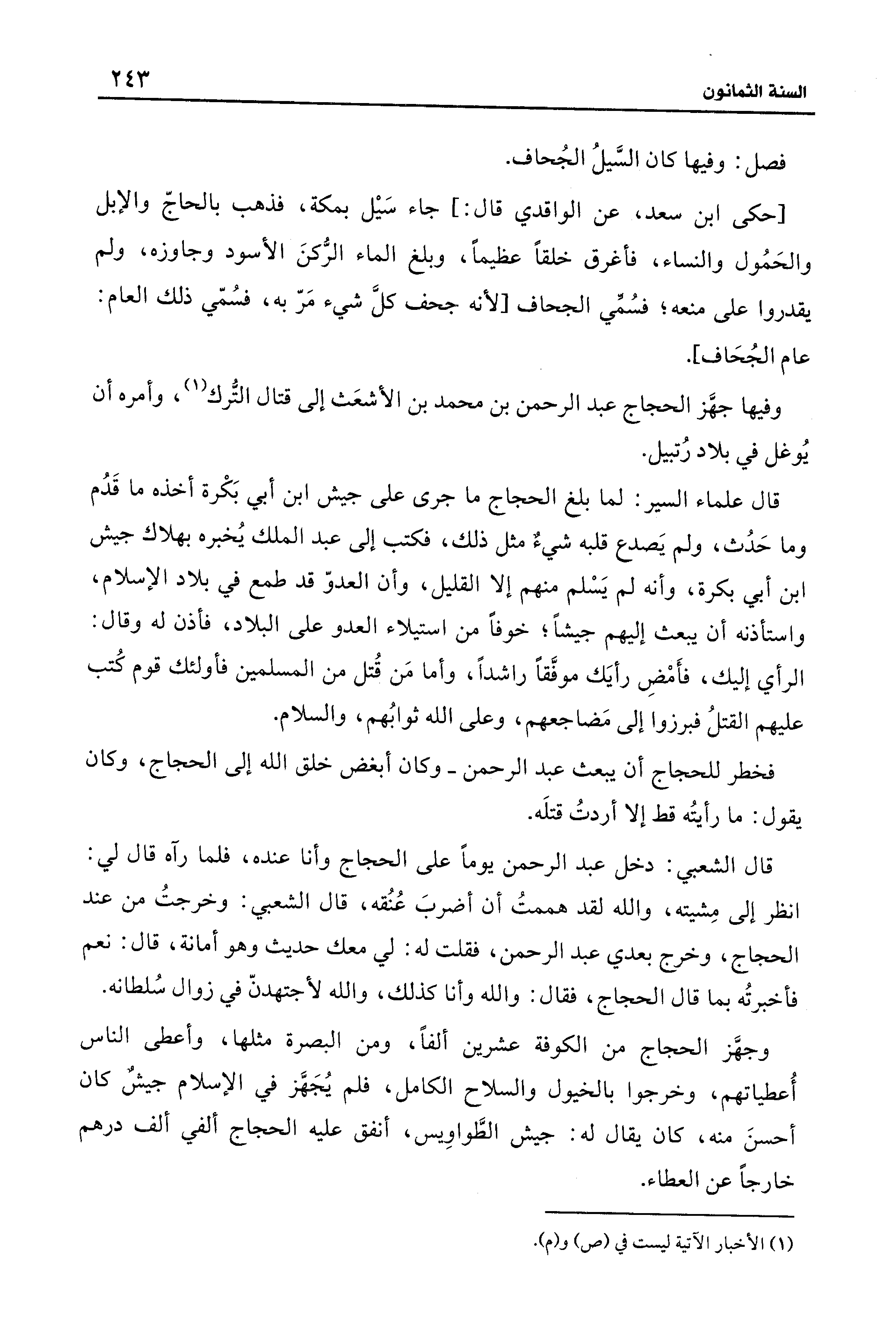فصل: وفيها كان السَّيلُ الجُحاف.