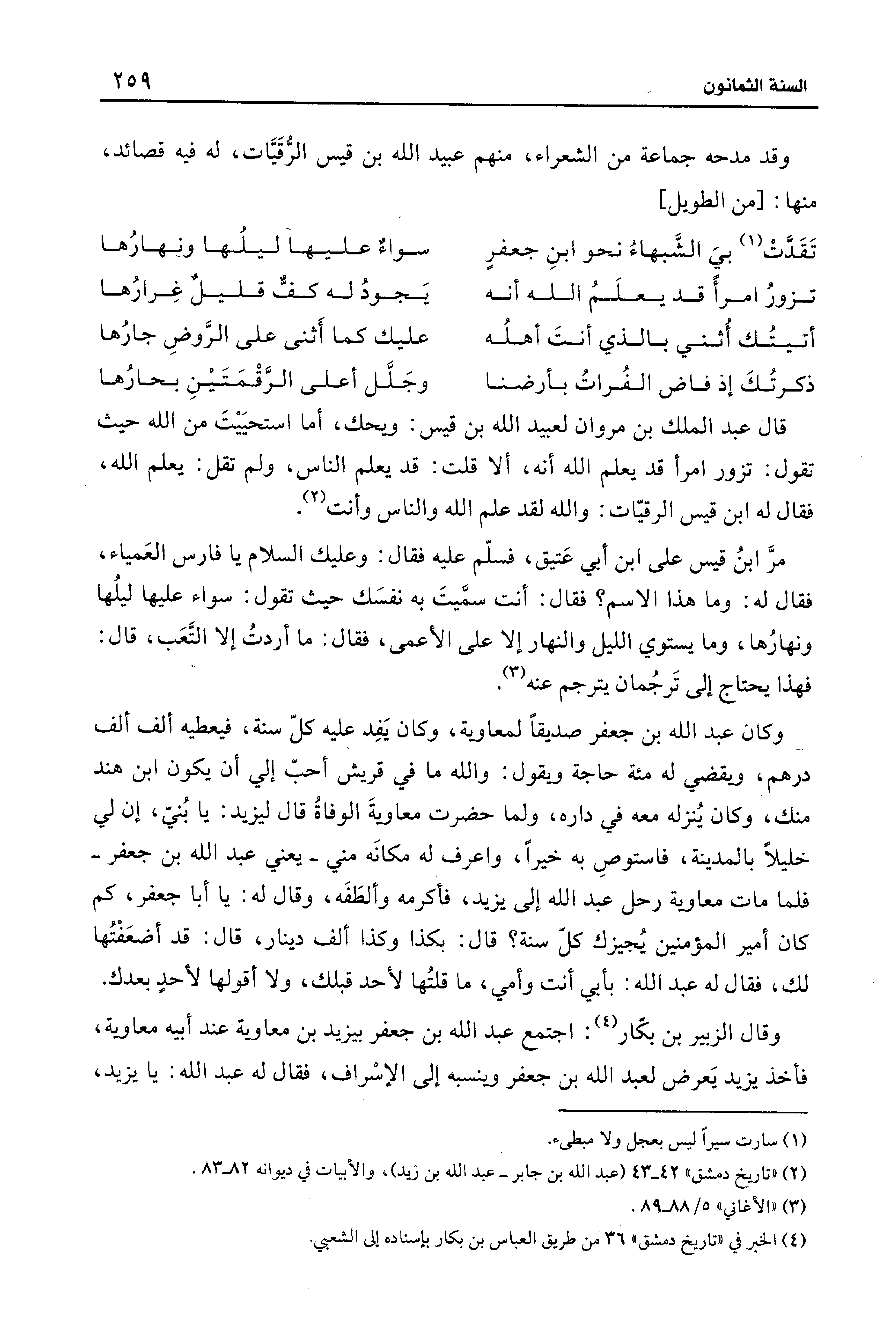 (¬2) "تاريخ دمشق" 42 - 43 (عبد الله بن جابر- عبد الله بن زيد)، والأبيات في ديوانه 82 - 83.