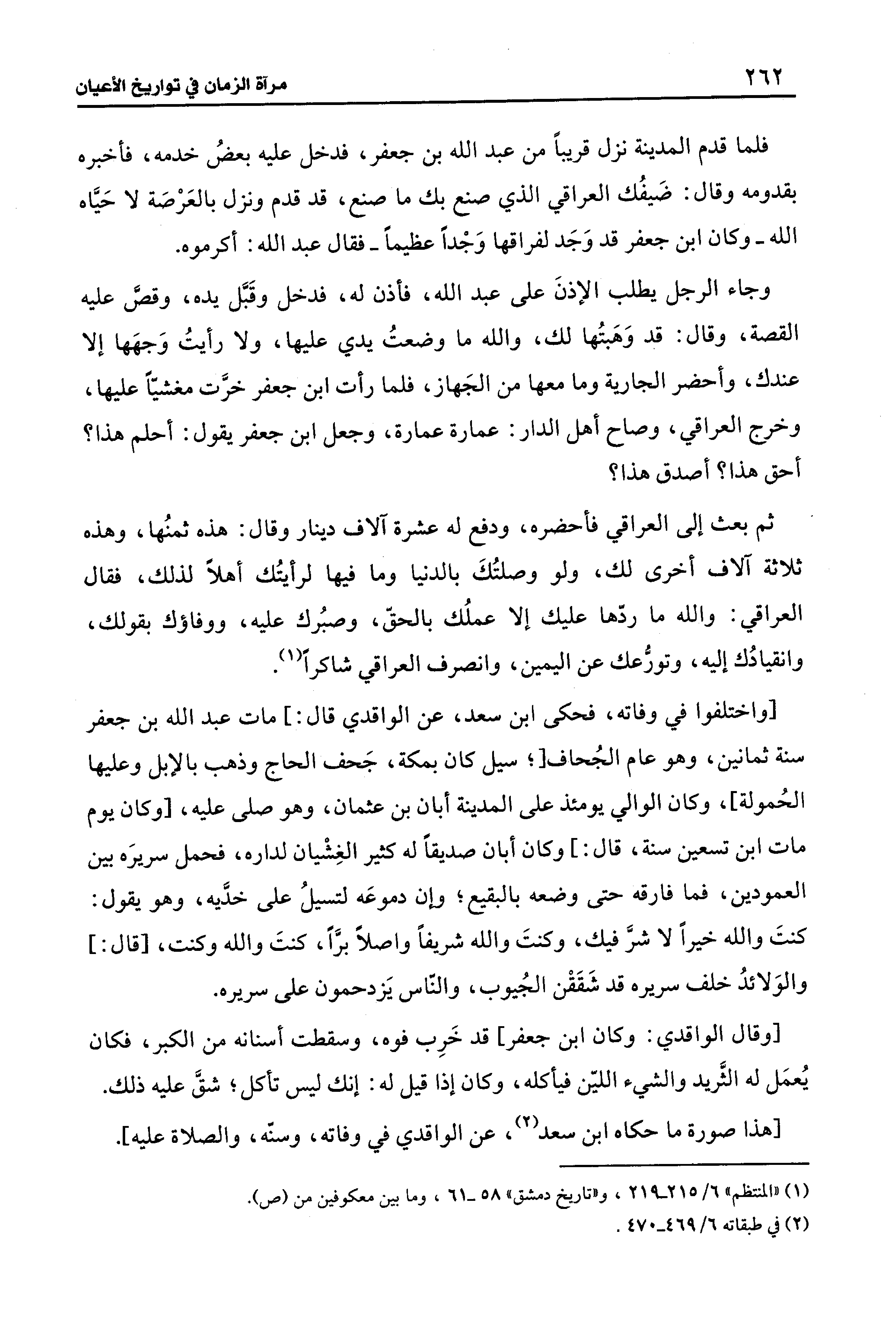 وجاء الرجل يطلب الإذنَ على عبد الله، فأذن له، فدخل وقَبَّل يده، وقص عليه القصة، وقال: قد وَهبتُها لك، والله ما وضعتُ يدي عليها، ولا رأيتُ وَجهها إلا عندك، وأحضر الجارية وما معها من الجَهاز، فلما رأت ابن جعفر خرَّت مغشيًّا عليها، وخرج العراقي، وصاح أهل الدار: عمارة عمارة، وجعل ابن جعفر يقول: أحلم هذا؟ أحق هذا؟ أصدق هذا؟