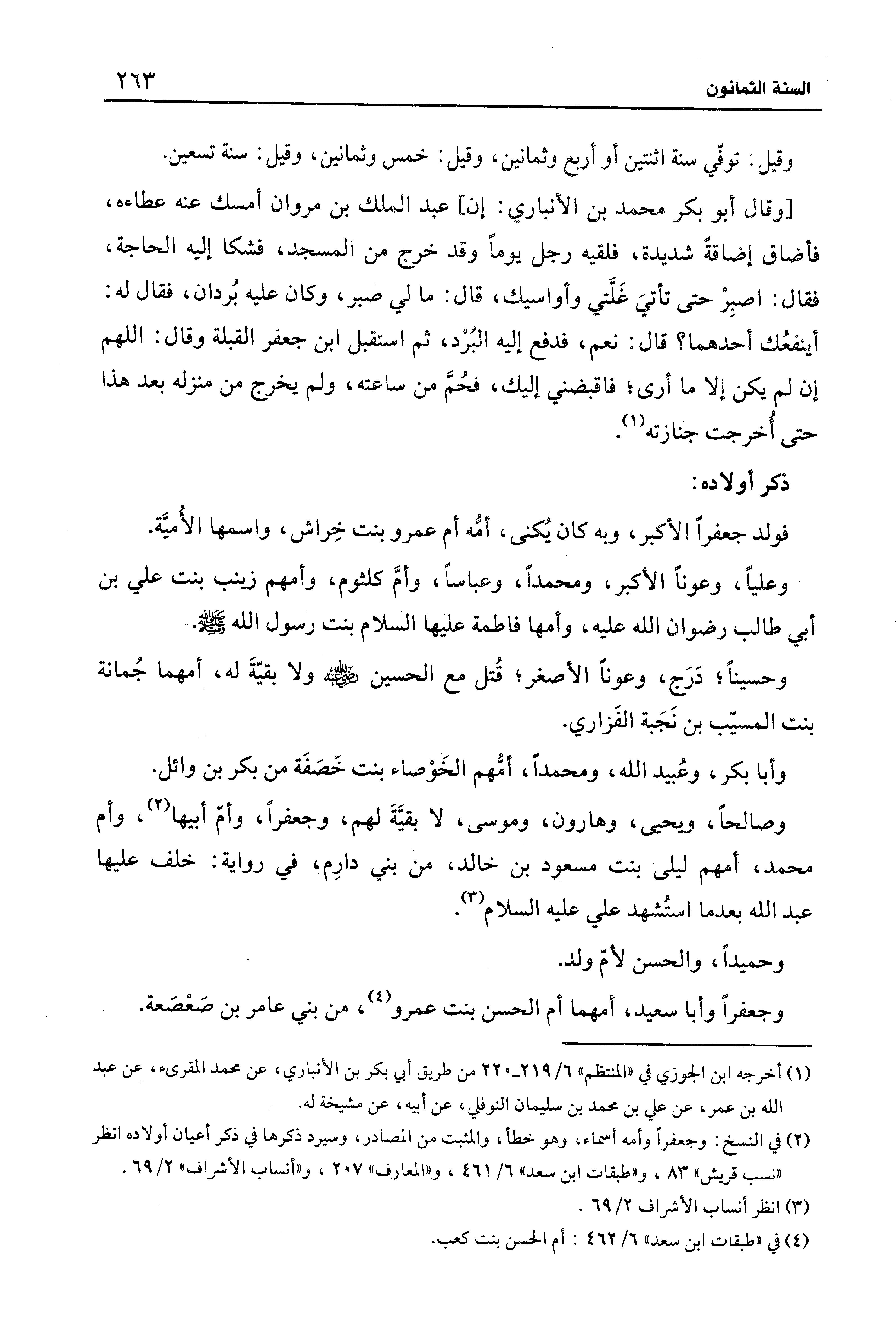(¬2) في النسخ: وجعفرًا وأمه أسماء، وهو خطأ، والمثبت من المصادر، وسيرد ذكرها في ذكر أعيان أولاده انظر "نسب قريش" 83، و"طبقات ابن سعد" 6/ 461، و"المعارف" 207، و"أنساب الأشراف" 2/ 69.