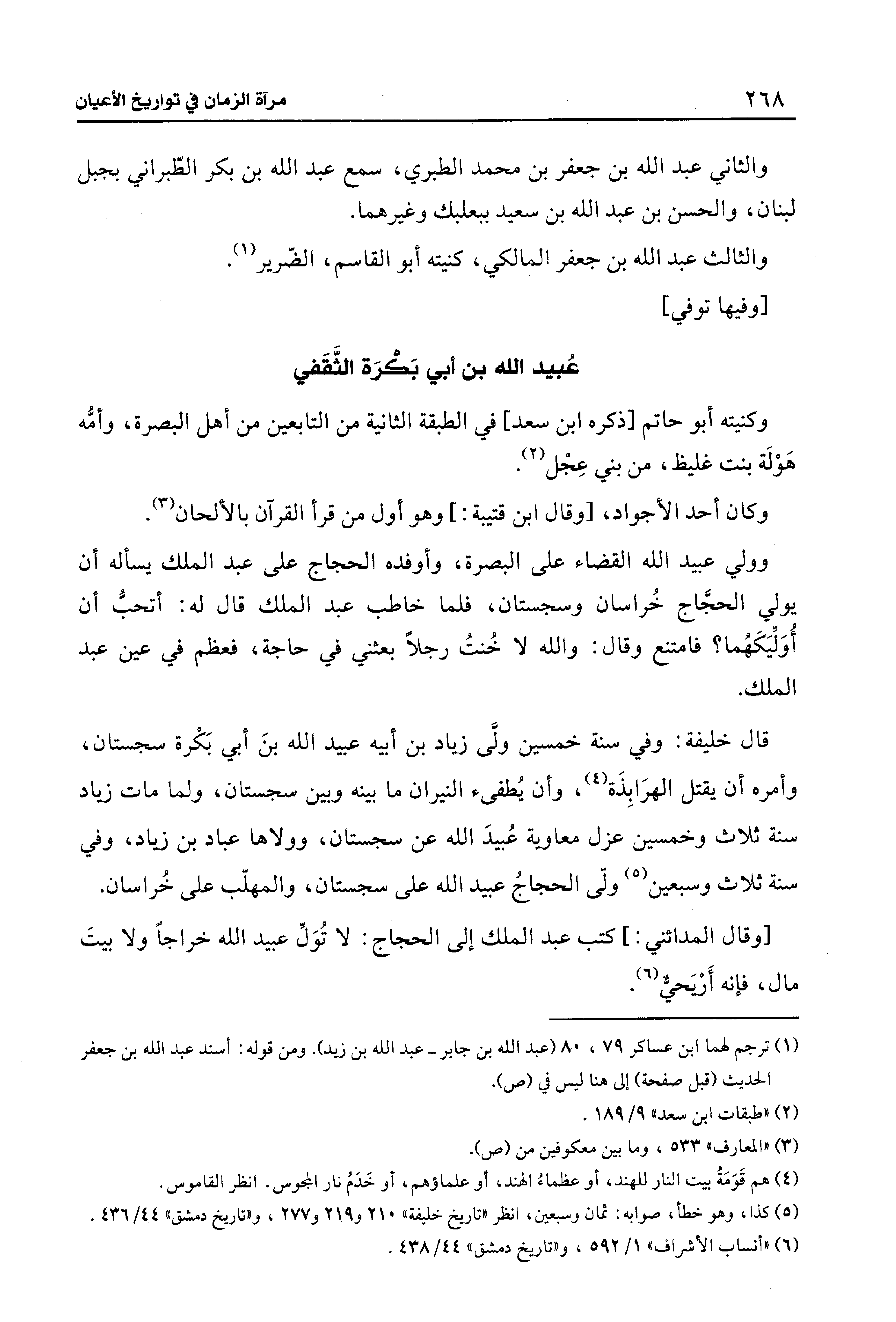 قال خليفة: وفي سنة خمسين ولَّى زياد بن أبيه عبيد الله بنَ أبي بَكْرة سجستان، وأمره أن يقتل الهرَابِذَة (¬4)، وأن يُطفئ النيران ما بينه وبين سجستان، ولما مات زياد سنة ثلاث وخمسين عزل معاوية عُبيدَ الله عن سجستان، وولاها عباد بن زياد، وفي سنة ثلاث وسبعين (¬5) ولّى الحجاجُ عبيد الله على سجستان، والمهلّب على خُراسان.