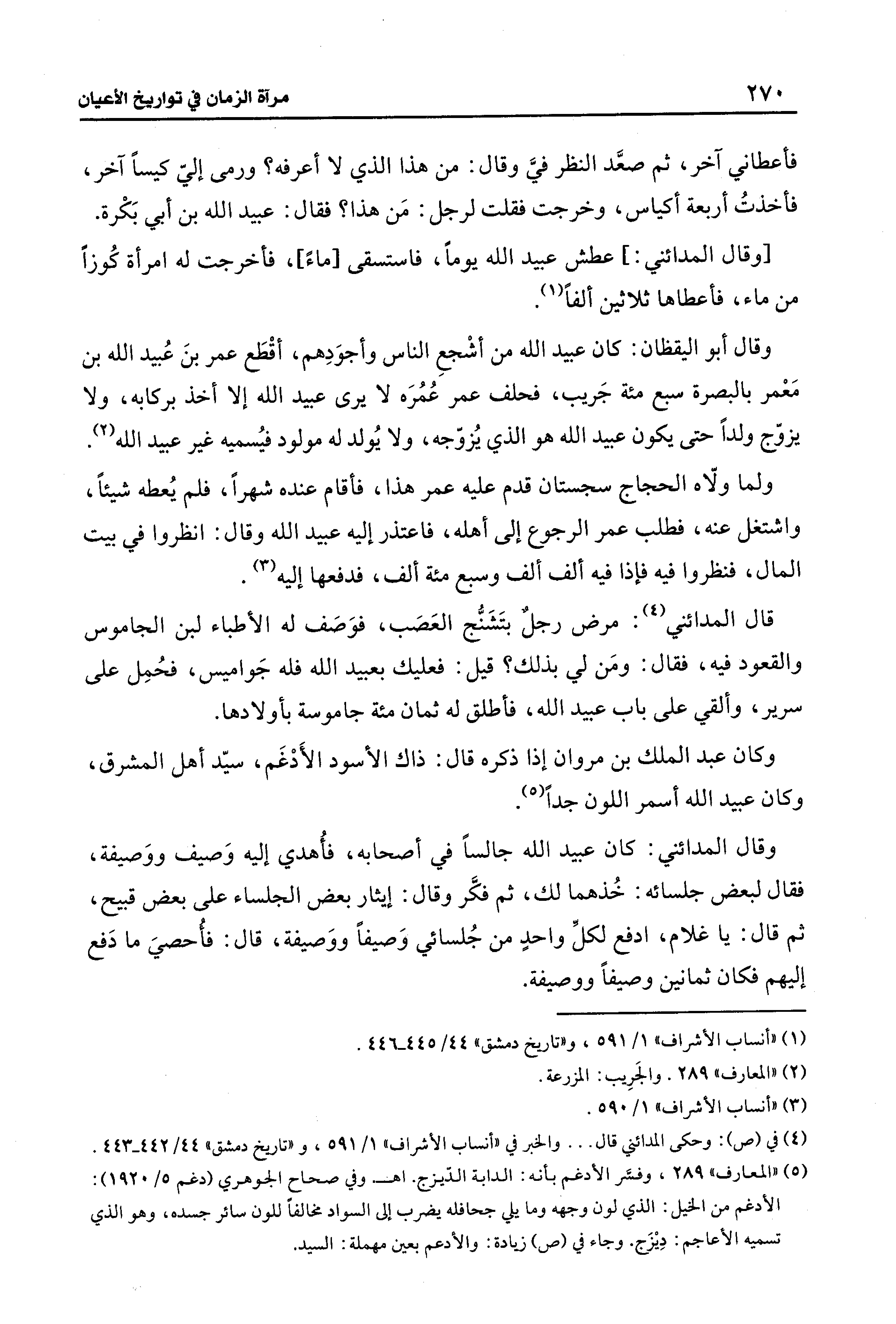 قال المدائني (¬4): مرض رجل بتَشَنُّج العَصَب، فوَصَف له الأطباء لبن الجاموس والقعود فيه، فقال: ومَن لي بذلك؟ قيل: فعليك بعبيد الله فله جَواميس، فحُمِل على سرير، وألقي على باب عبيد الله، فأطلق له ثمان مئة جاموسة بأولادها.