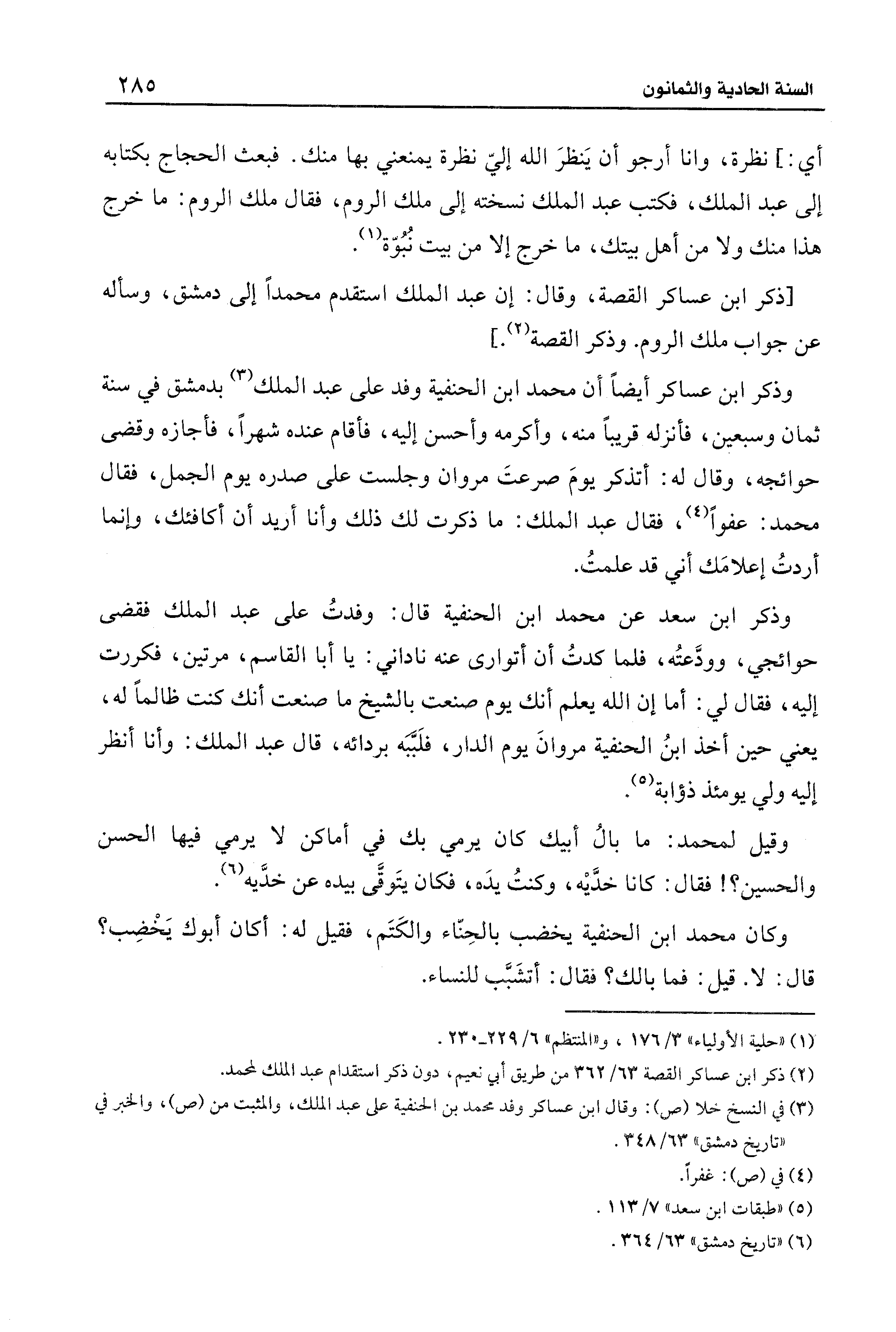 (¬3) في النسخ خلا (ص): وقال ابن عساكر وفد محمد بن الحنفية على عبد الملك، والمثبت من (ص)، والخبر في "تاريخ دمشق" 63/ 348.