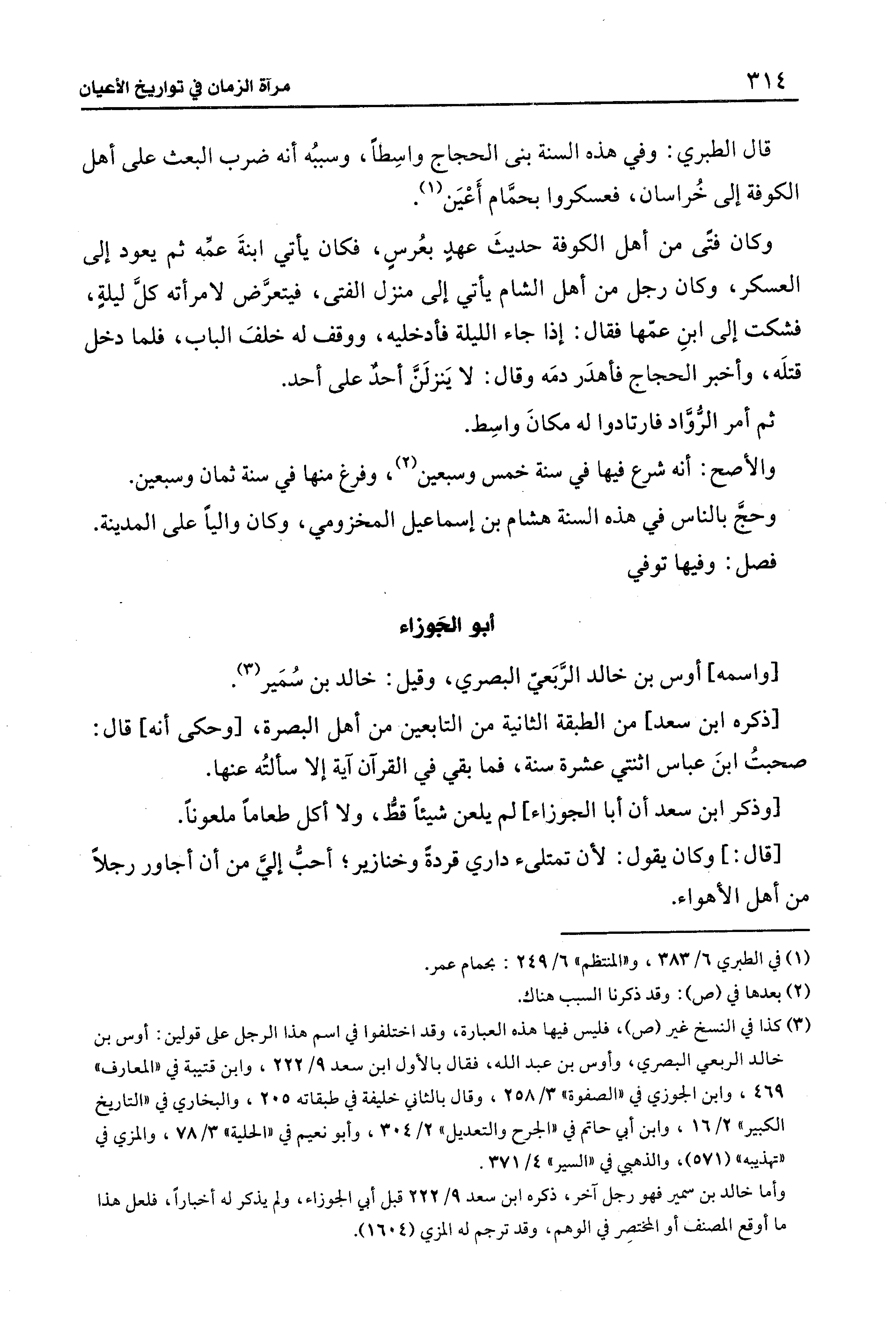 (¬3) كذا في النسخ غير (ص)، فليس فيها هذه العبارة، وقد اختلفوا في اسم هذا الرجل على قولين: أوس بن خالد الربعي البصري، وأوس بن عبد الله، فقال بالأول ابن سعد 9/ 222، وابن قتيبة في "المعارف" 469، وابن الجوزي في "الصفوة" 3/ 258، وقال بالثاني خليفة في طبقاته 205، والبخاري في "التاريخ الكبير" 2/ 16، وابن أبي حاتم في "الجرح والتعديل" 2/ 304، وأبو نعيم في "الحلية"3/ 78، والمزي في "تهذيبه" (571)، والذهبي في "السير"4/ 371.